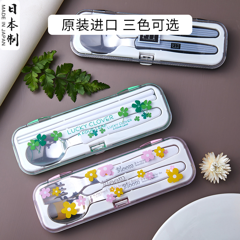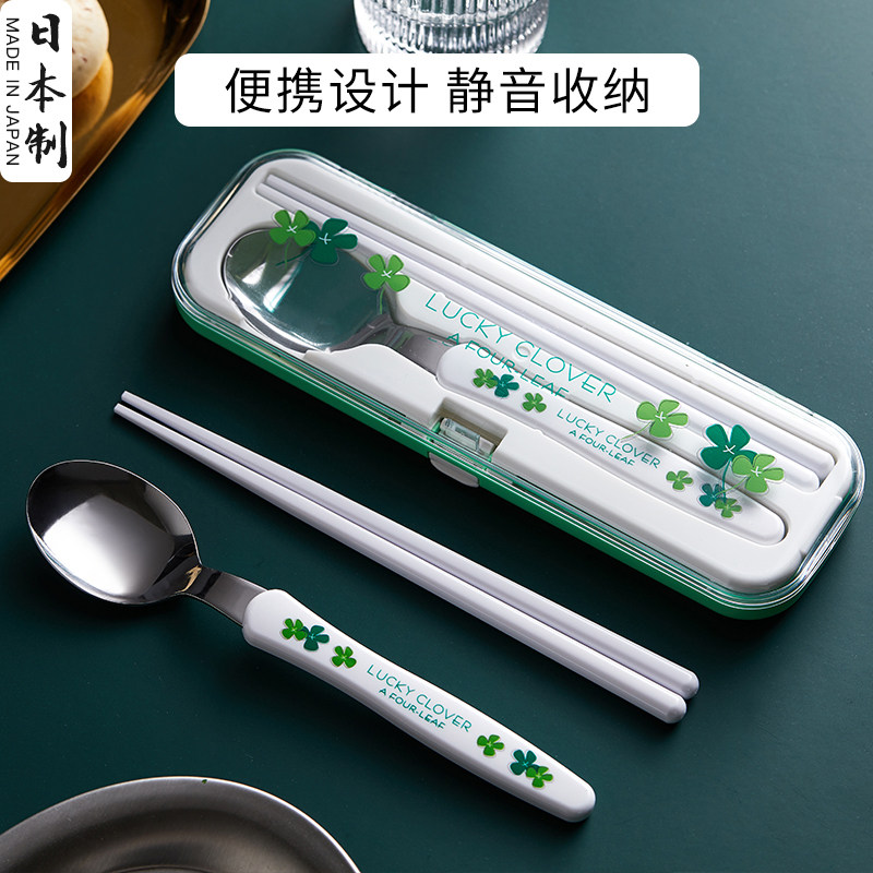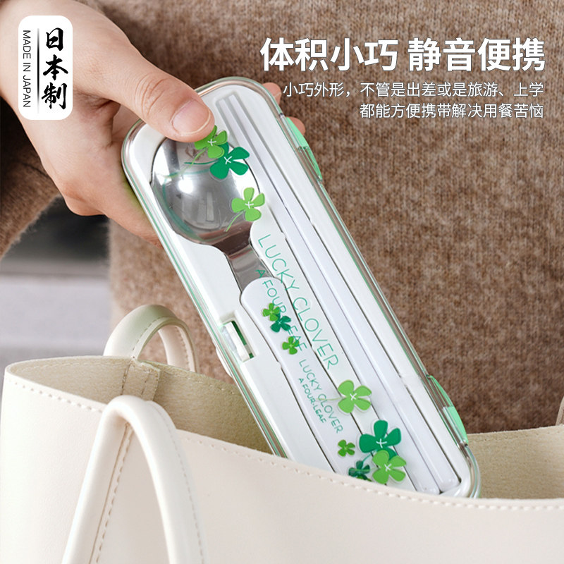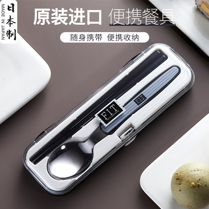 日本进口不锈钢筷子勺子套装小学生外带上班单人便携餐具收纳盒