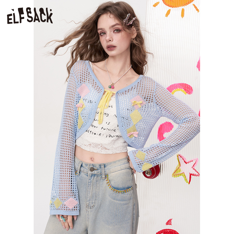 妖精的口袋白色镂空针织衫开衫女2025年夏季新款休闲百搭开衫外套