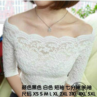 春夏热卖长袖一字领露肩蕾丝衫修身显瘦欧美大码舒适上衣t恤女潮