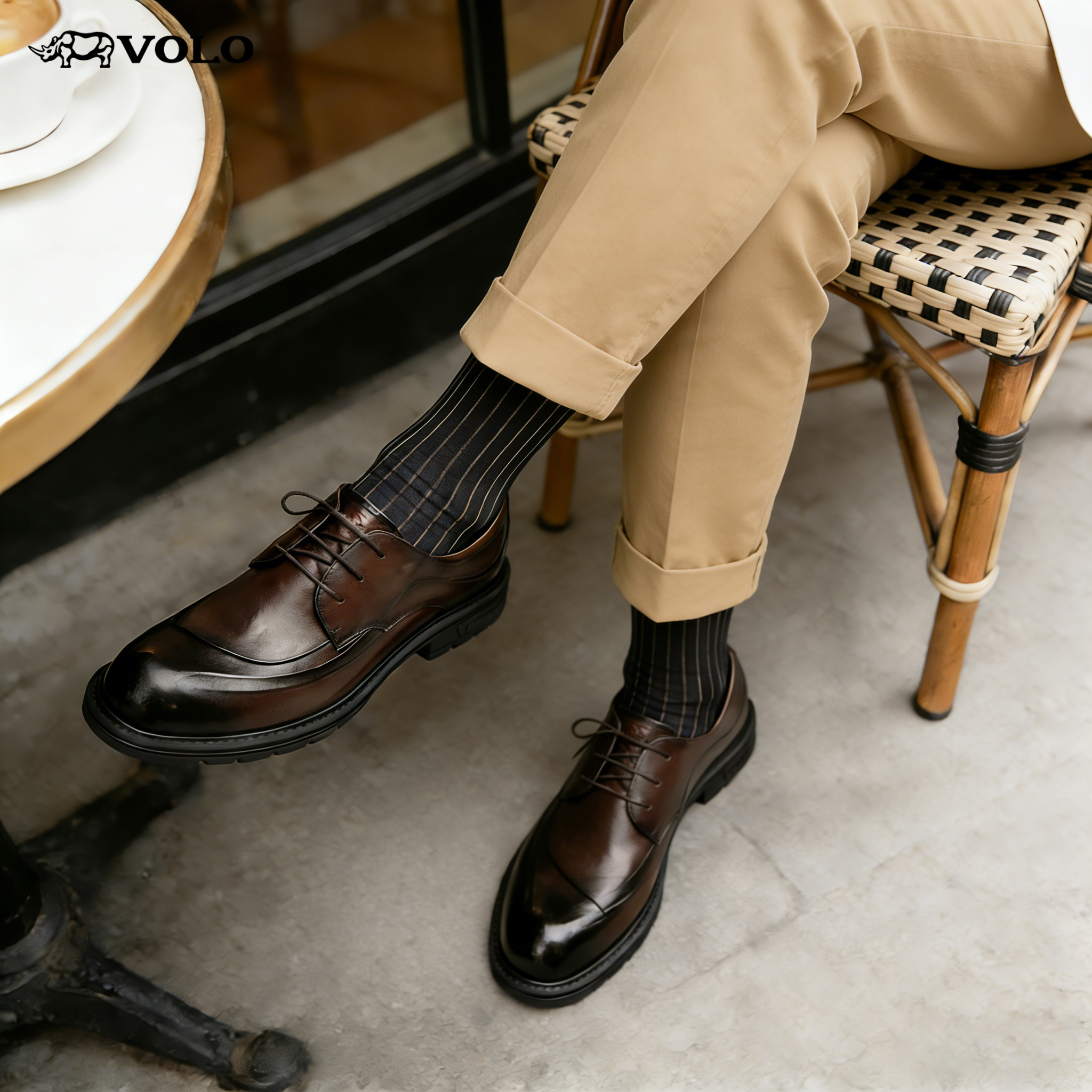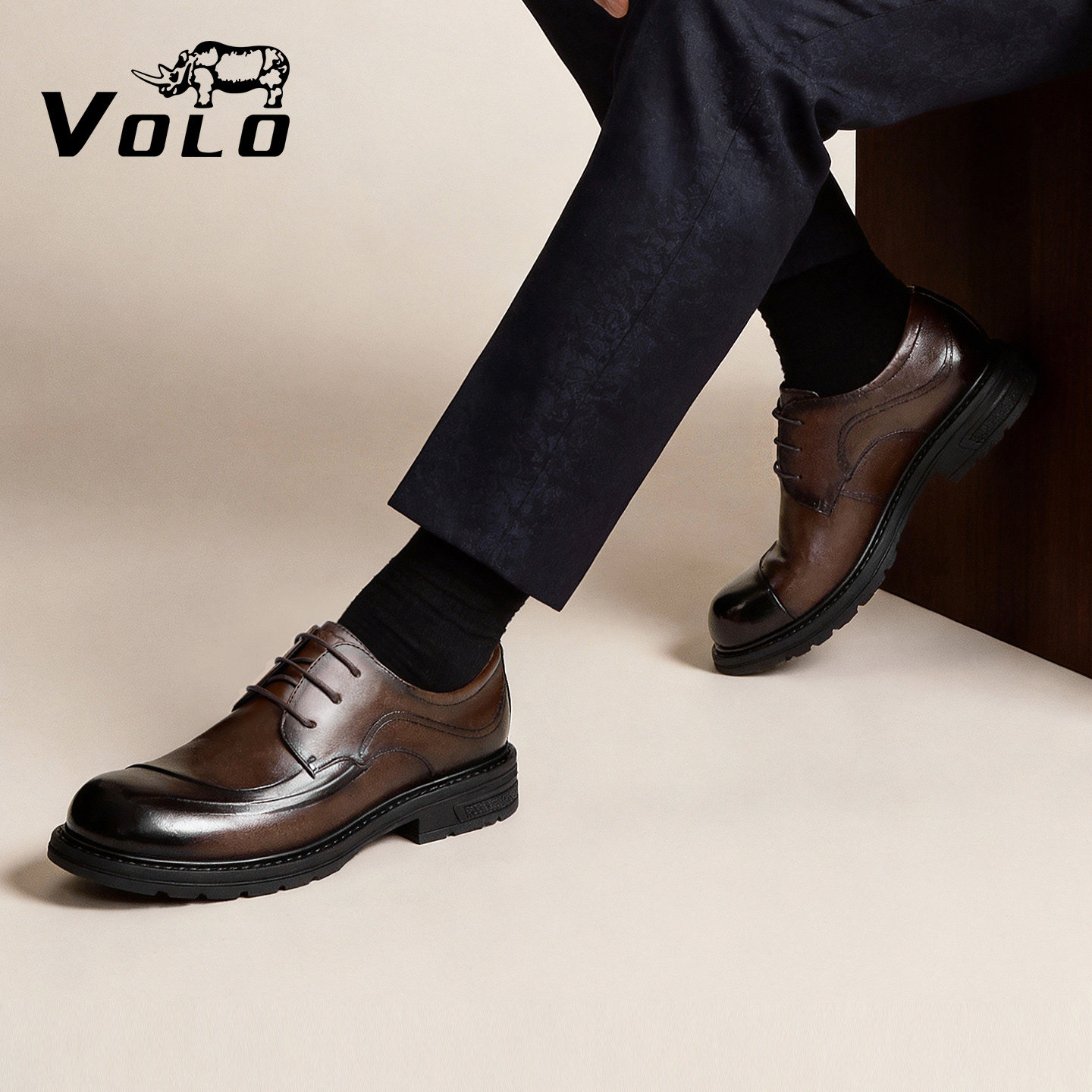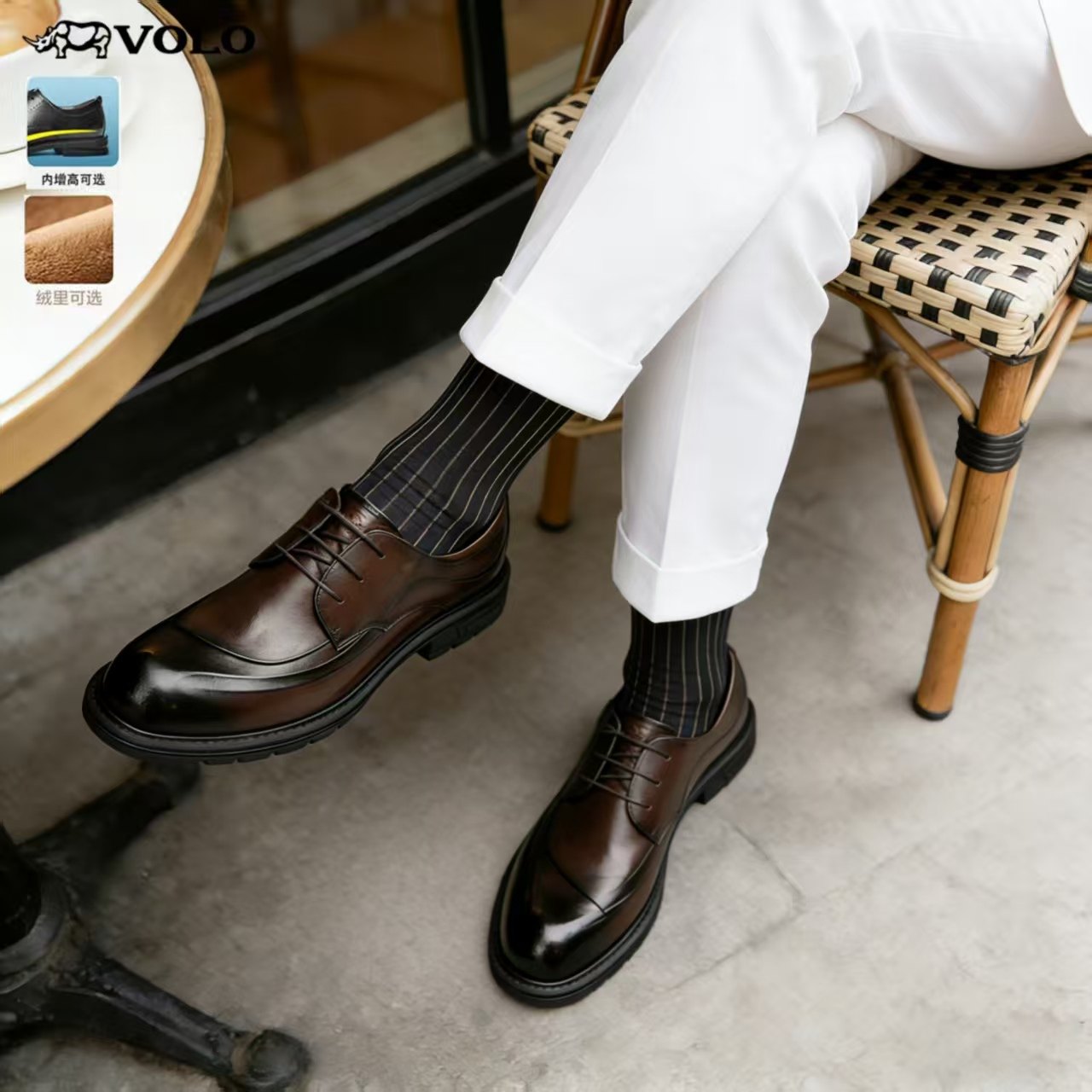 6CM增高!VOLO犀牛男士休闲皮鞋