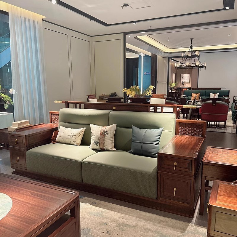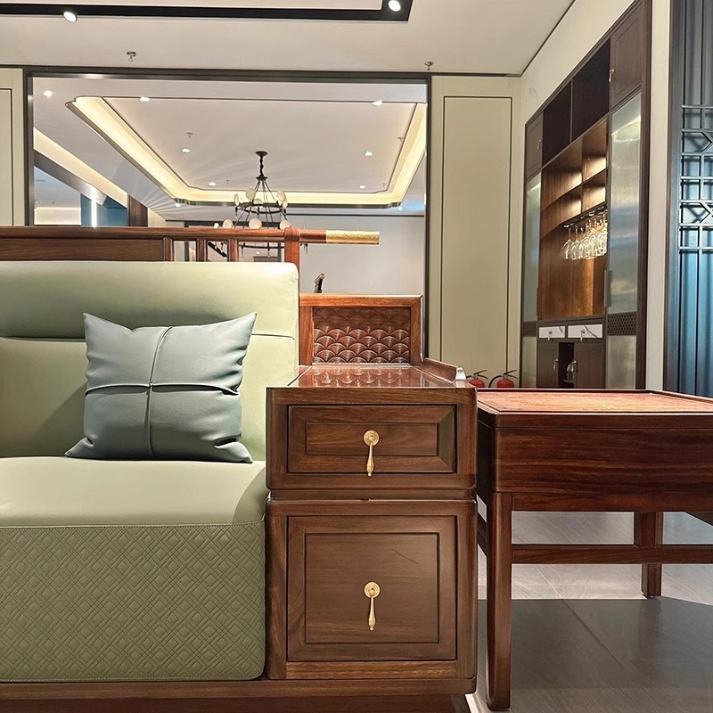 新中式乌金木实木沙发全实木简约现代组合大户型别墅客厅真皮沙发
