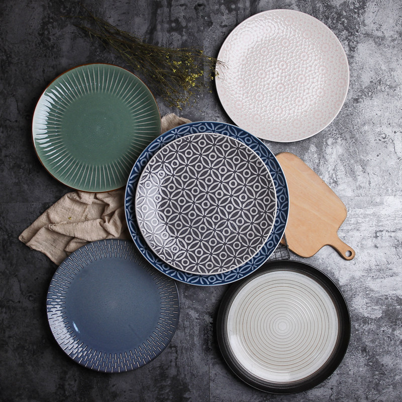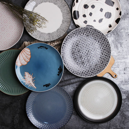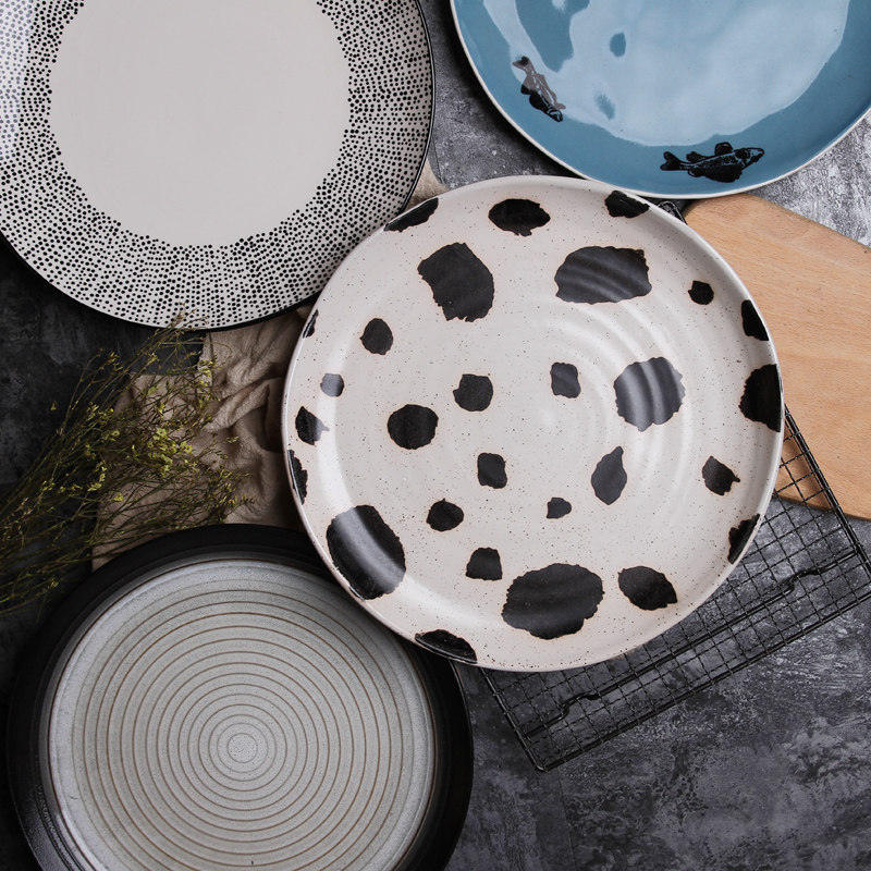 ins北欧陶瓷盘子超大号盆10寸 创意水果盘牛排盘圆盘鱼盘家用餐盘