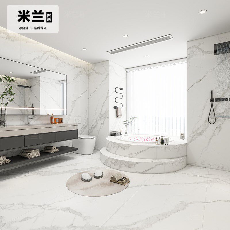 伯克利白800X2600岩板大板瓷砖别墅酒店卫生间浴室墙砖背景墙连纹