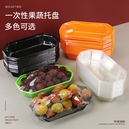 船型款一次性pet透明塑料打包盒黑色水果蔬菜250克芒果葡萄托盘盒