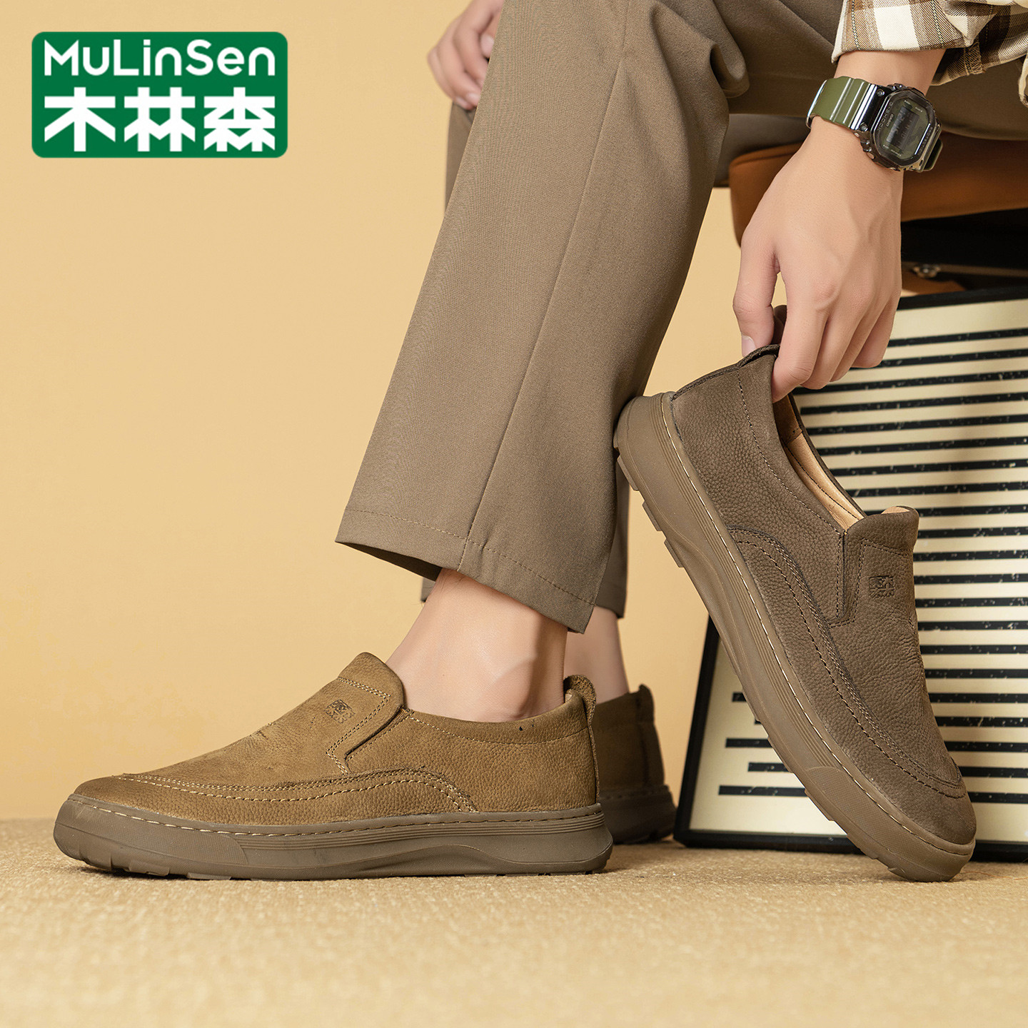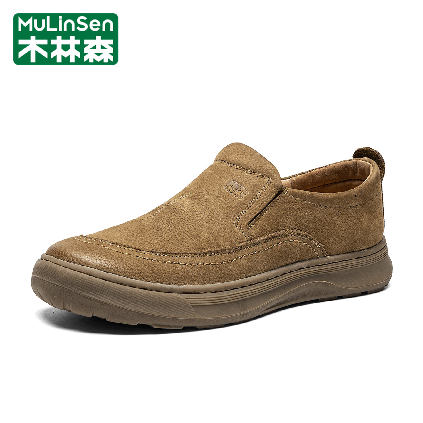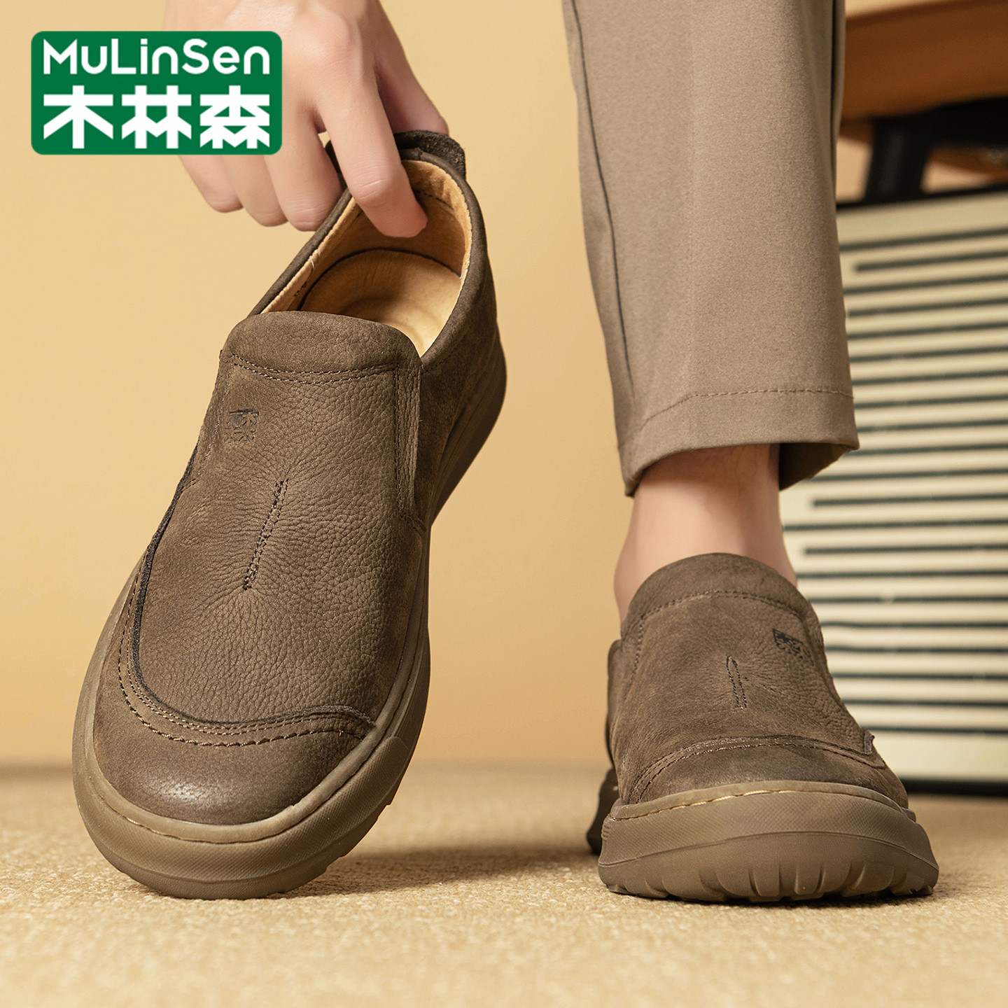 木林森皮鞋男款头层牛皮商务英伦乐福一脚蹬通勤软底开车豆豆板鞋