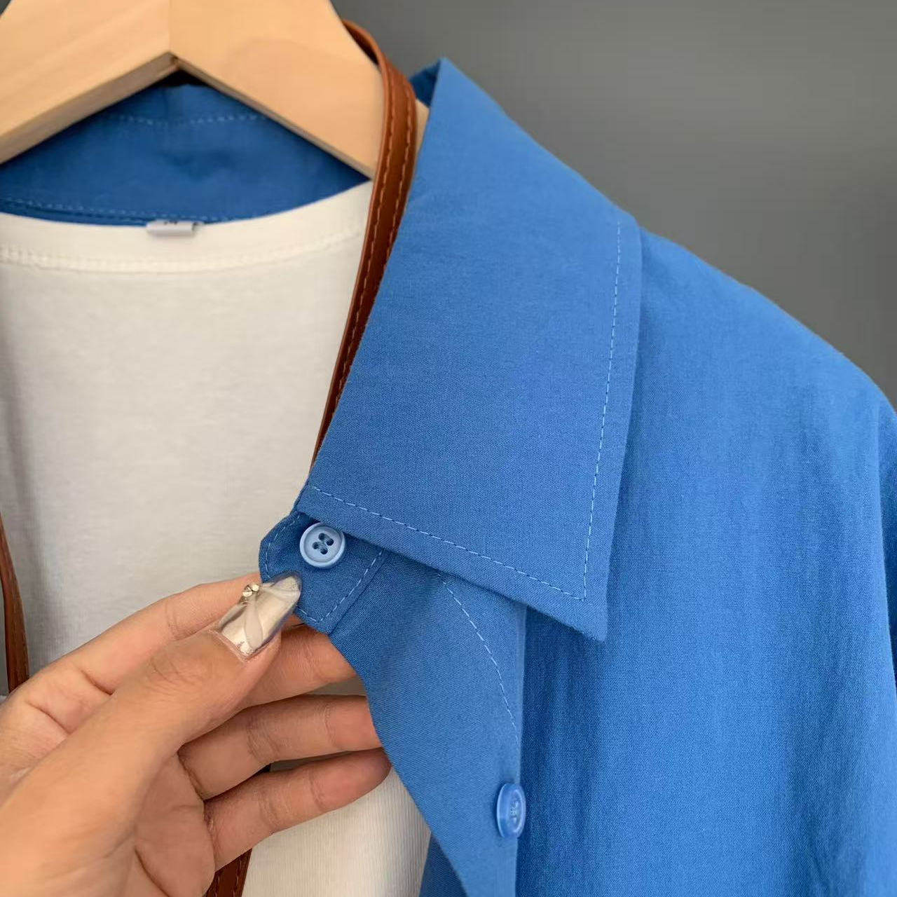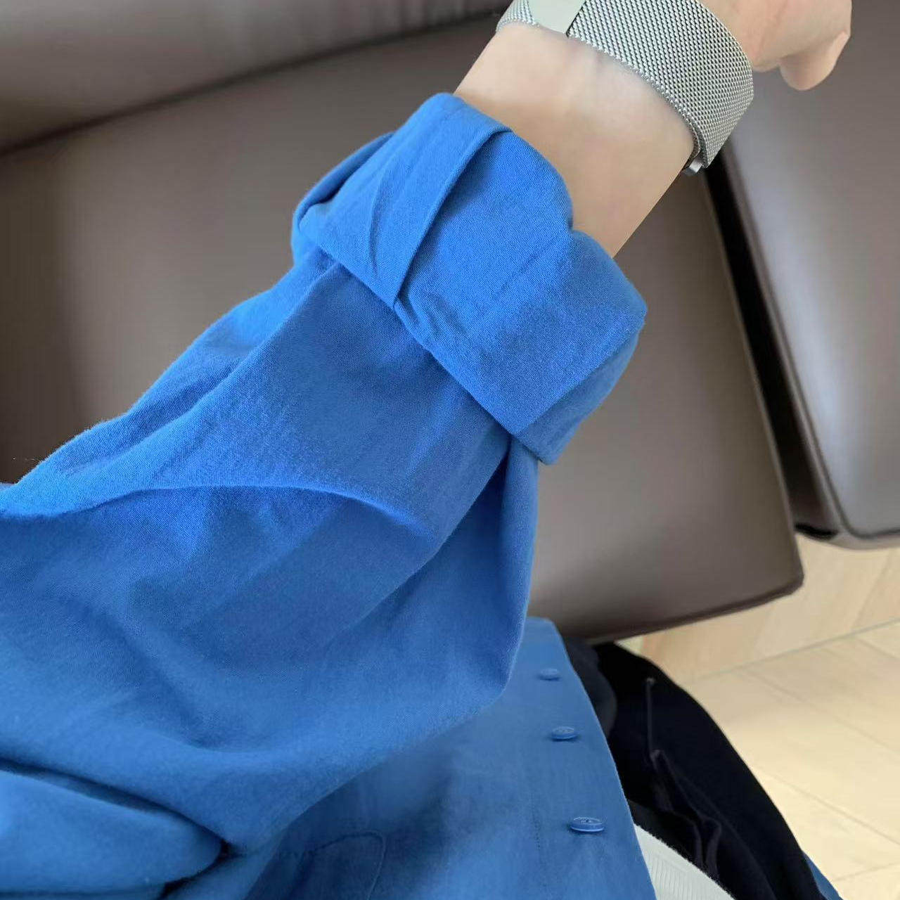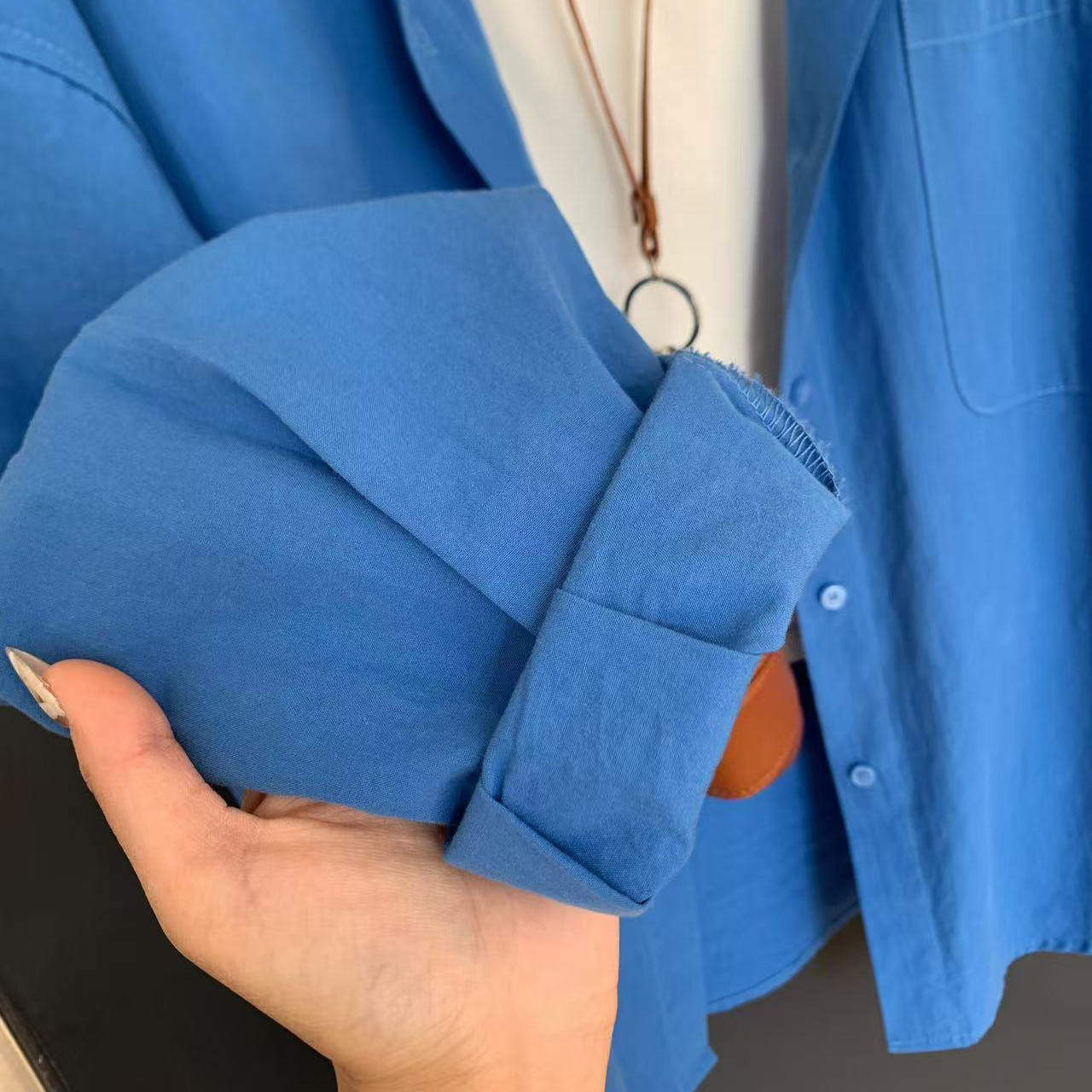 100%棉法式克莱因蓝纯棉衬衫女叠穿内搭宽松遮肉显瘦长袖衬衣外套