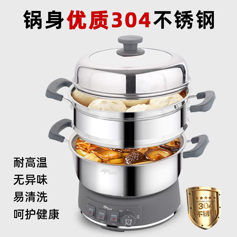 佳佳恋电蒸锅家用多功能电热锅不锈钢电炒锅蒸煮一体式定时电火锅