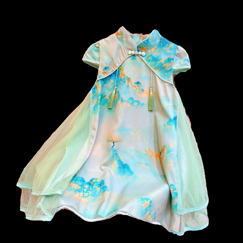 儿童旗袍裙夏季女童连衣裙中国风童装女孩旗袍连衣裙表演礼服裙