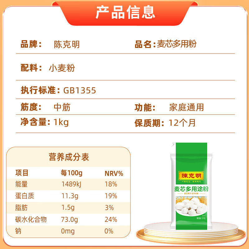 陈克明面粉家用中筋面粉小麦粉包子馒头饺子专用面粉1kg5斤10斤装