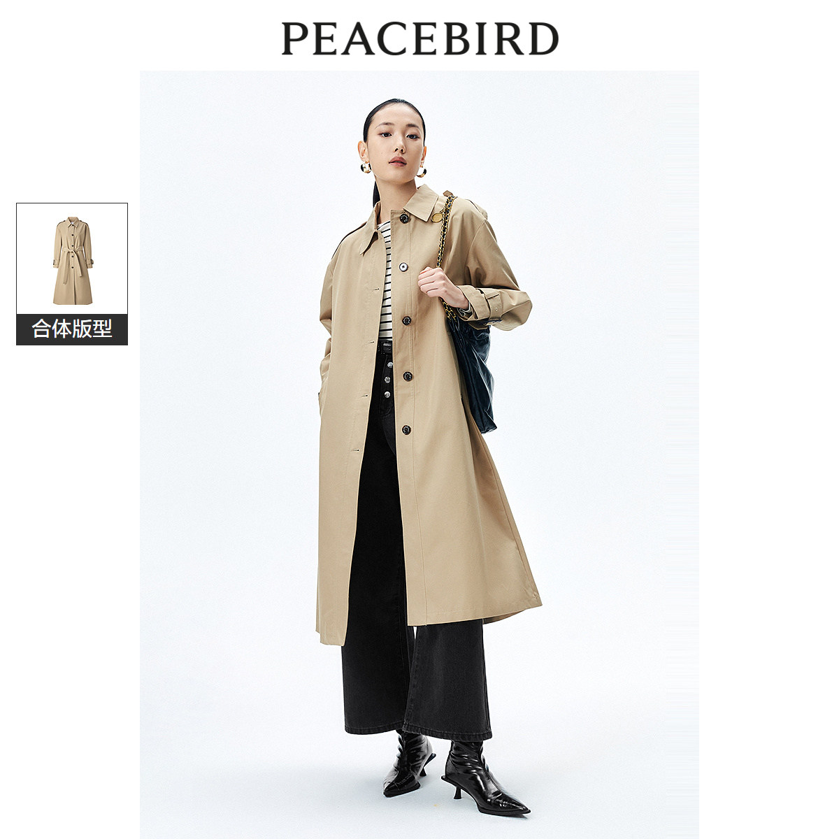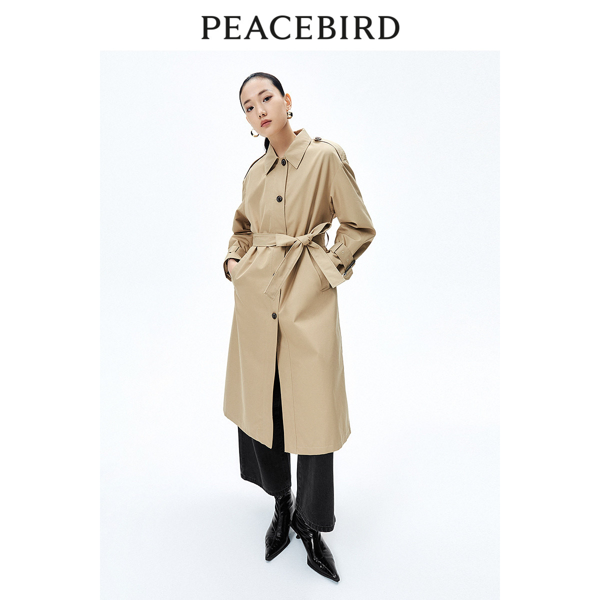 PEACEBIRD/太平鸟翻领长款风衣