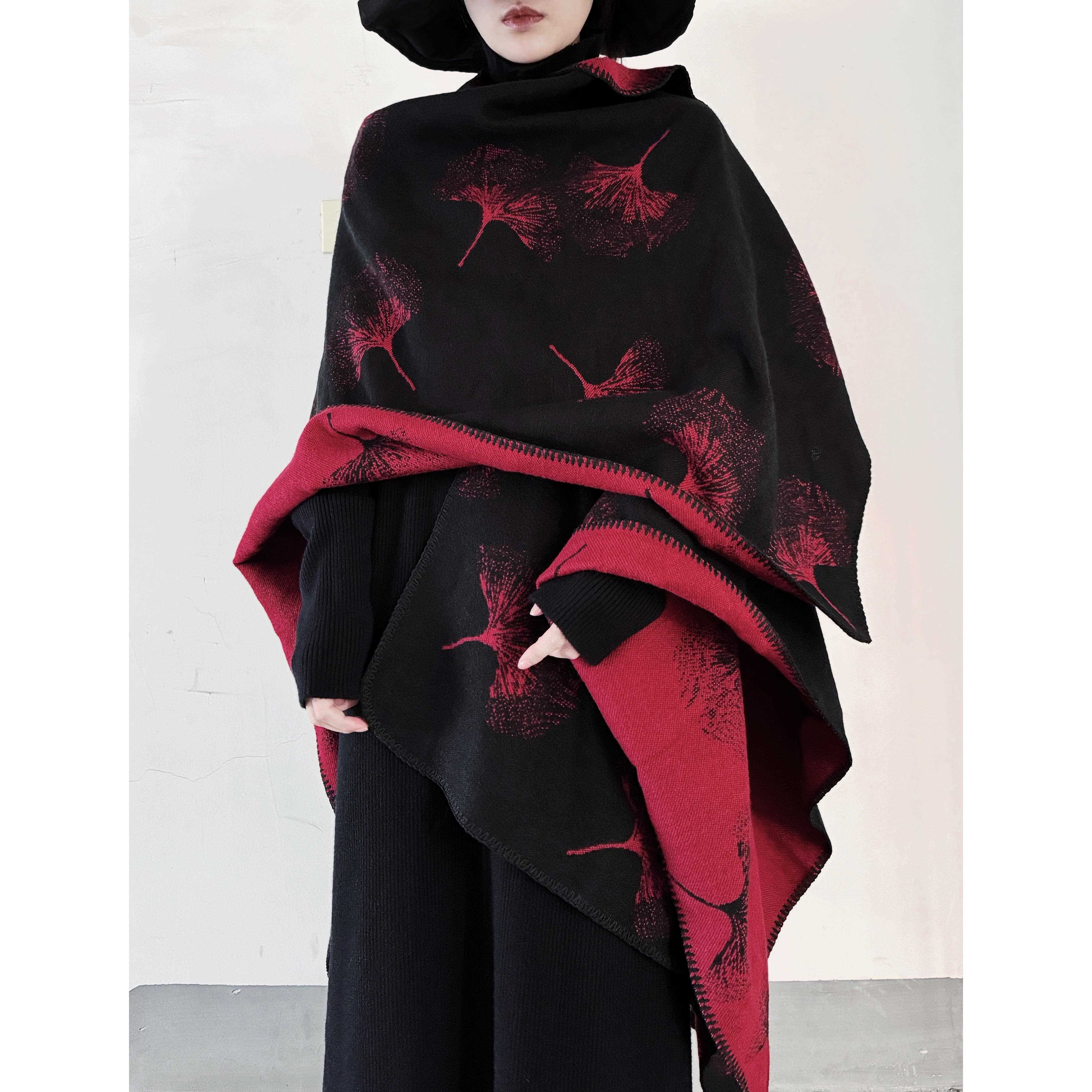 秋冬洋气百搭女士围巾披肩自留氛围感印花斗篷凹造型保暖女1010c