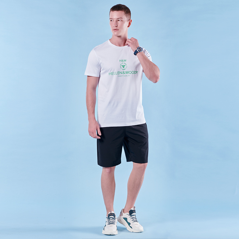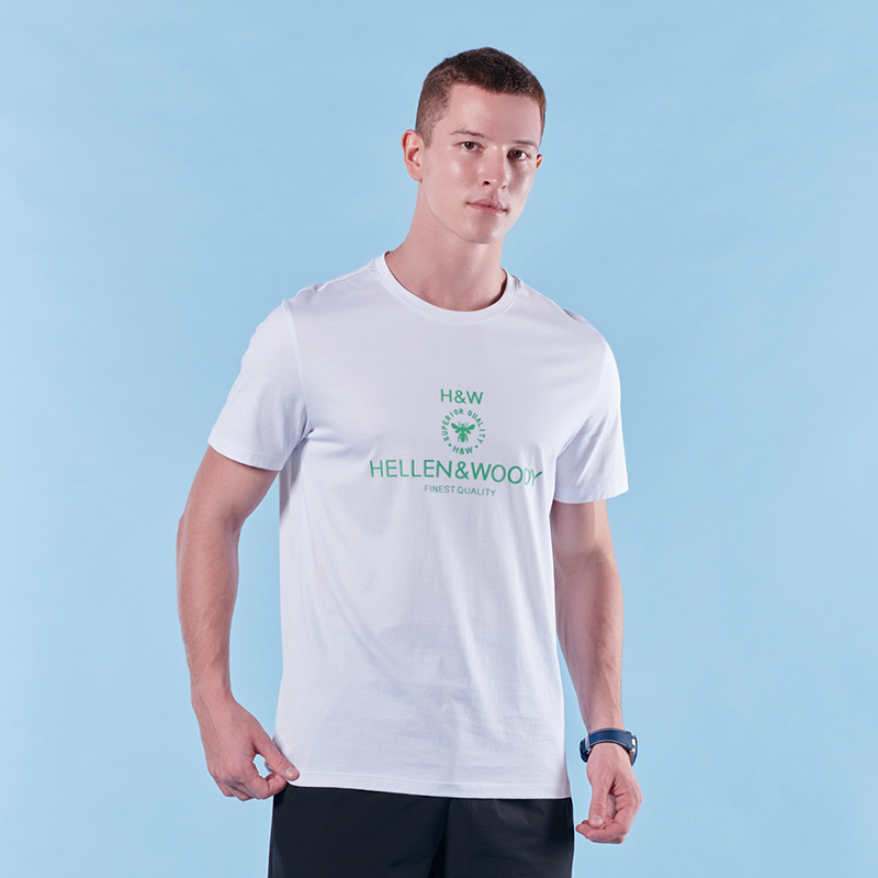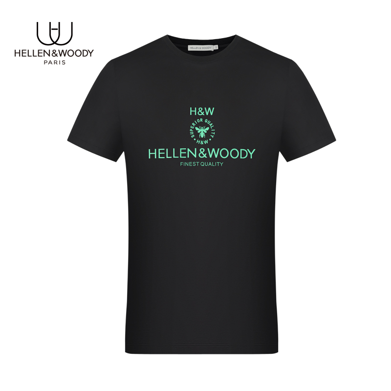 HELLEN&WOODY奢侈品夏季新款丝光棉短袖修身简约字母T恤短袖圆领