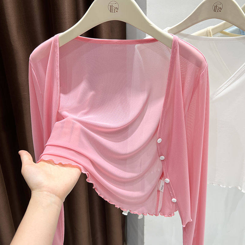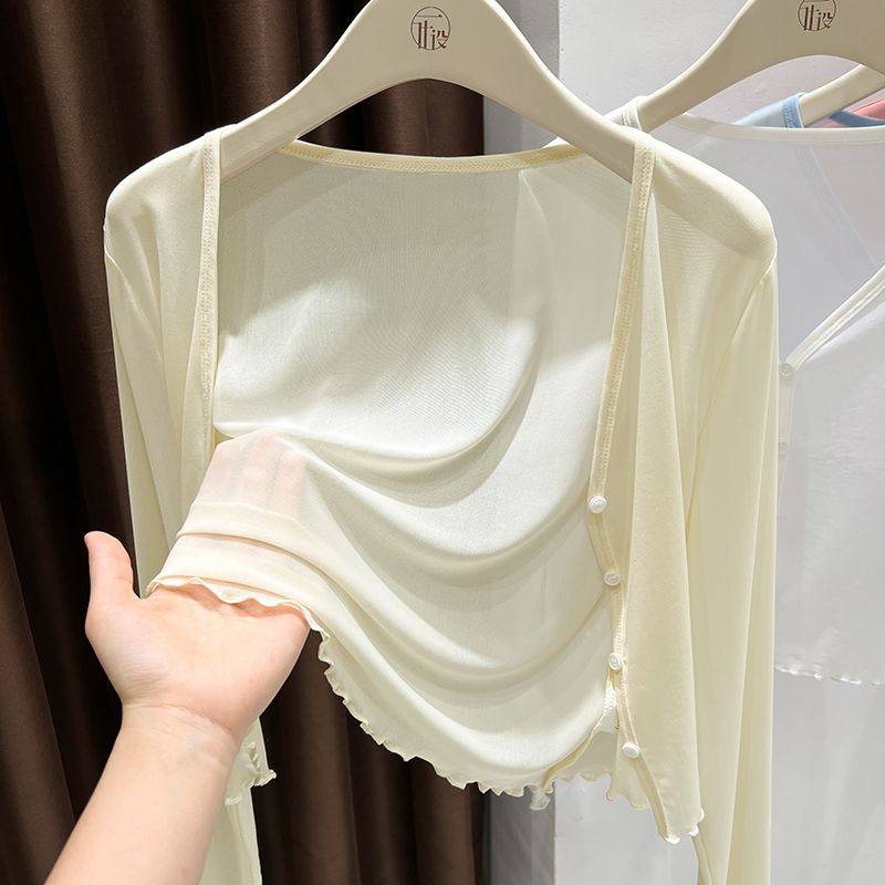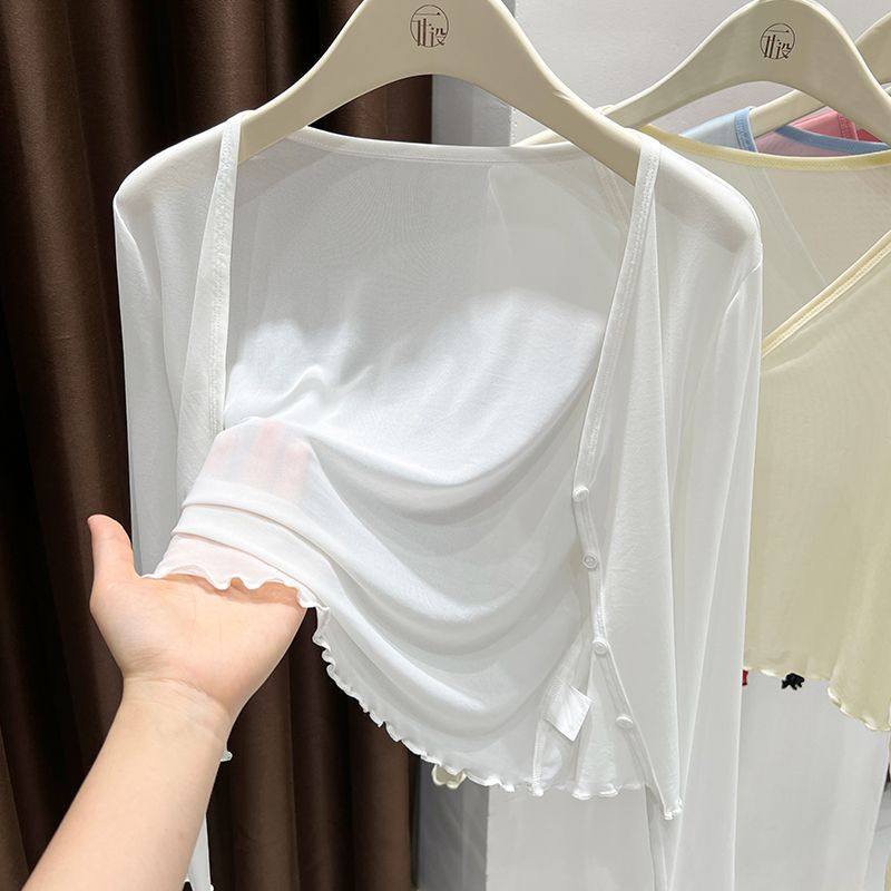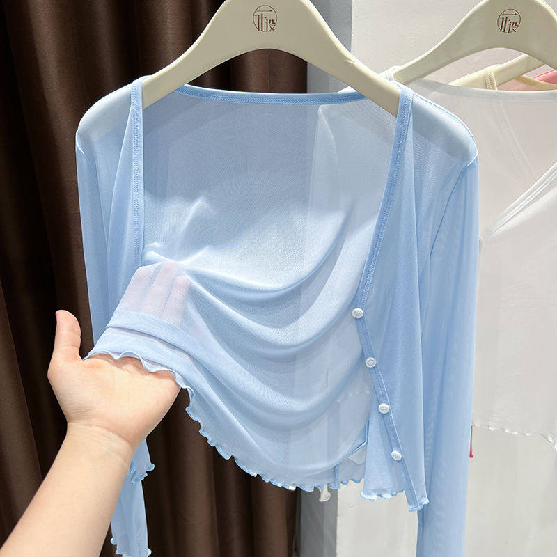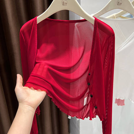 大码冰丝披肩网纱防晒开衫女裝胖mm吊带裙外搭空调罩衫薄纱短外套
