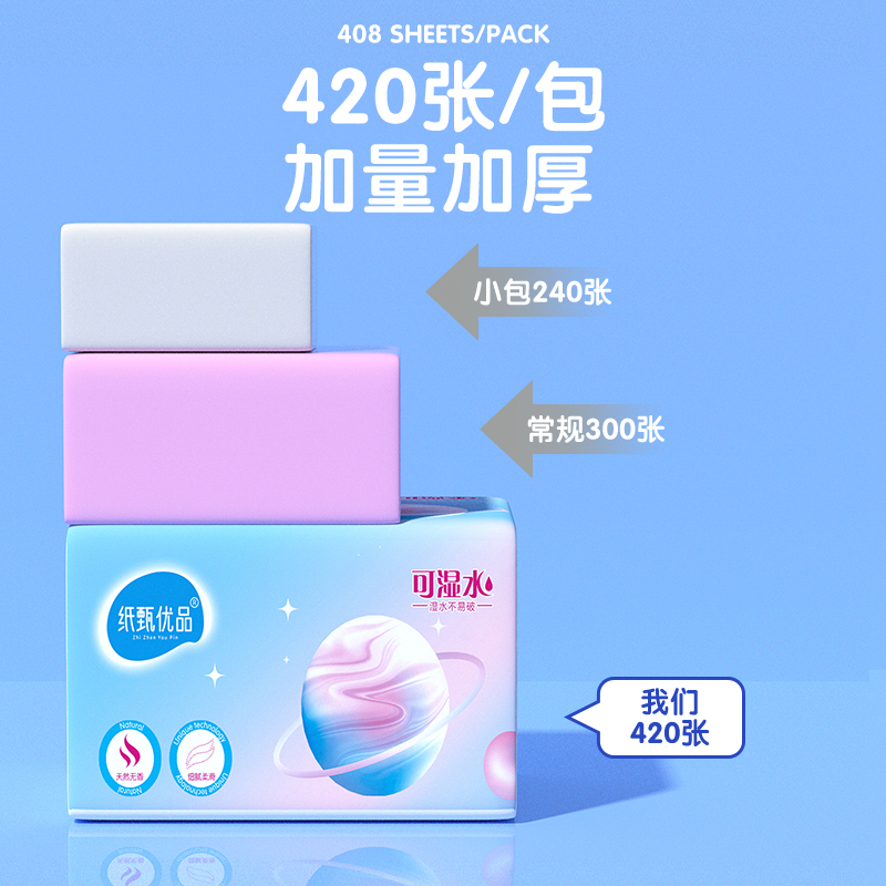 【加量加厚】原木420张大包抽纸家用实惠装整箱批发卫生纸餐巾纸