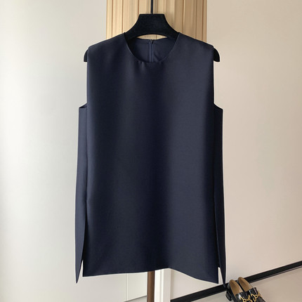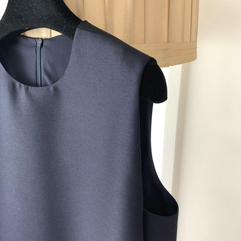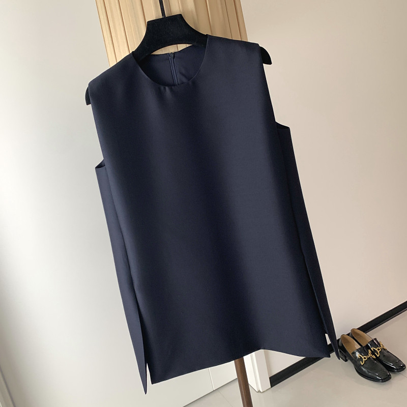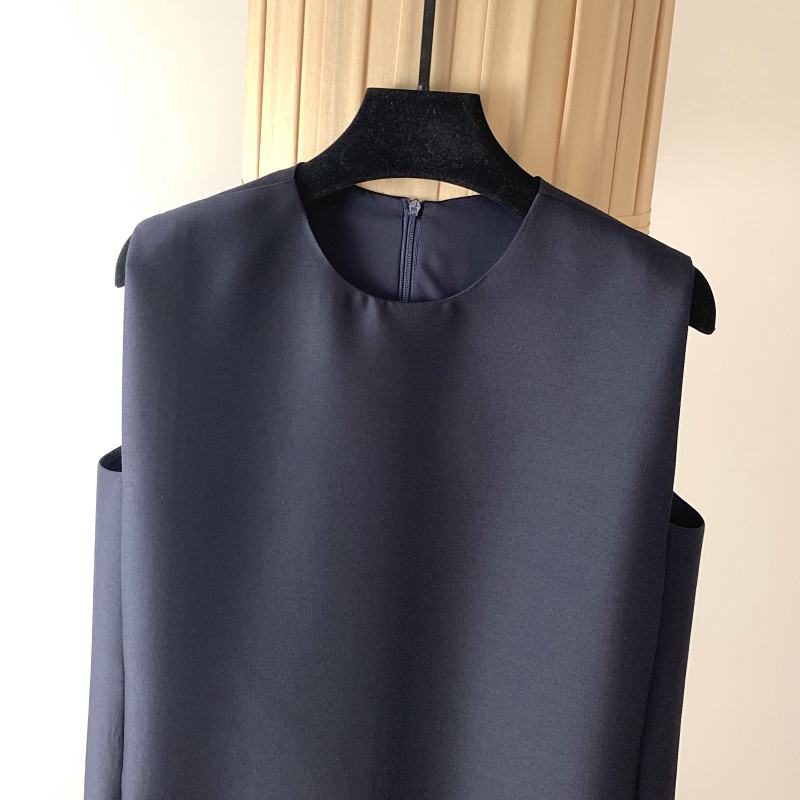 及简精致 重磅真丝+羊毛直筒圆领背心马甲裙 显瘦无袖开叉连衣裙