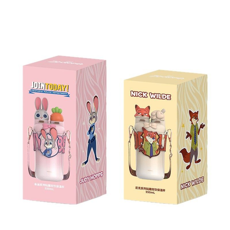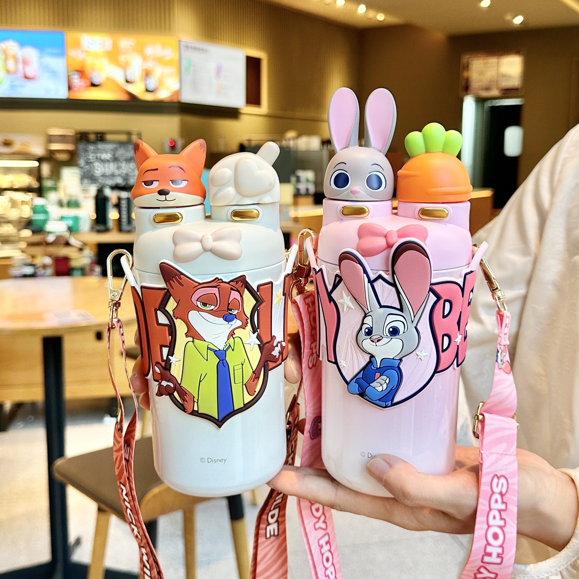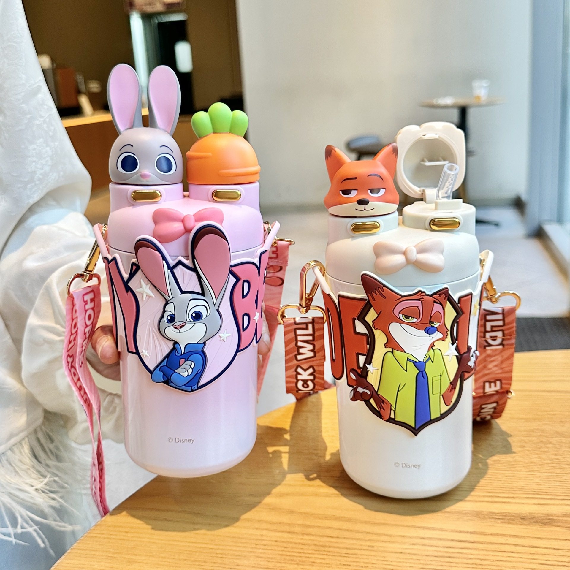 迪士尼朱迪尼克保温杯儿童带吸管直饮双饮杯男女童学生背带水杯子