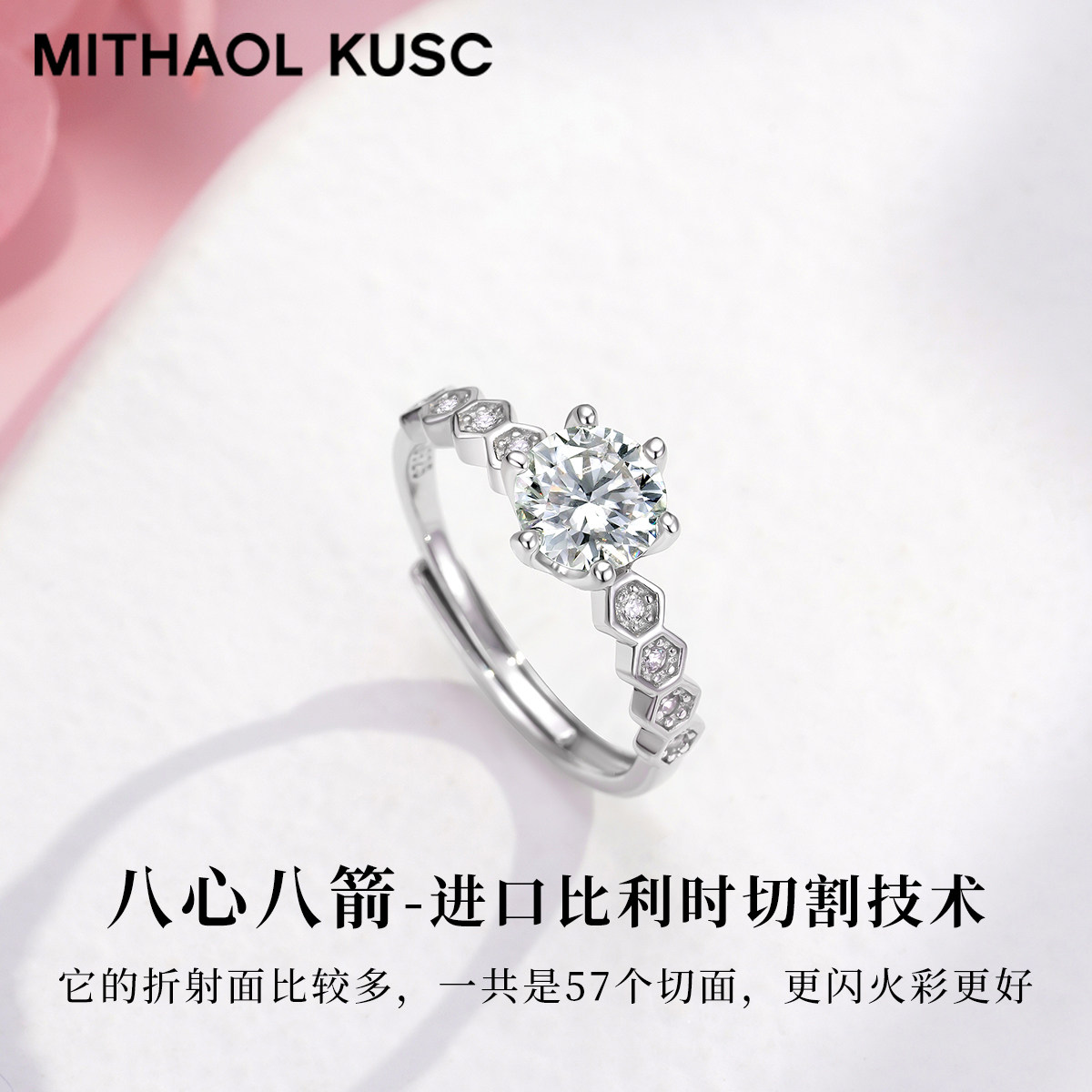 正品D色莫桑石钻戒1克拉纯银求婚结婚戒指女九星款豪华婚戒送女友