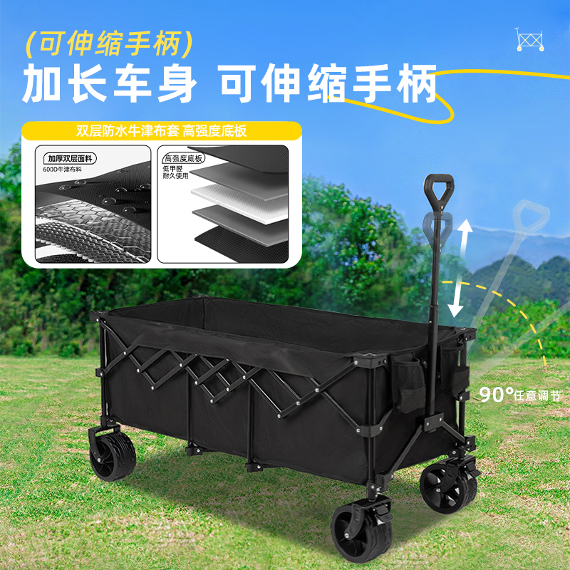 踢腾露营车超大号手推车折叠户外儿童可躺营地车加长牛津布大容量