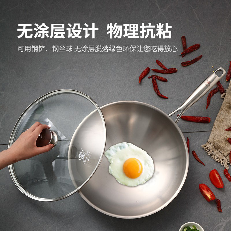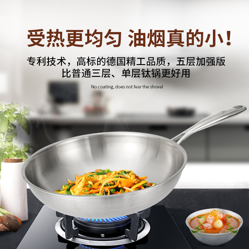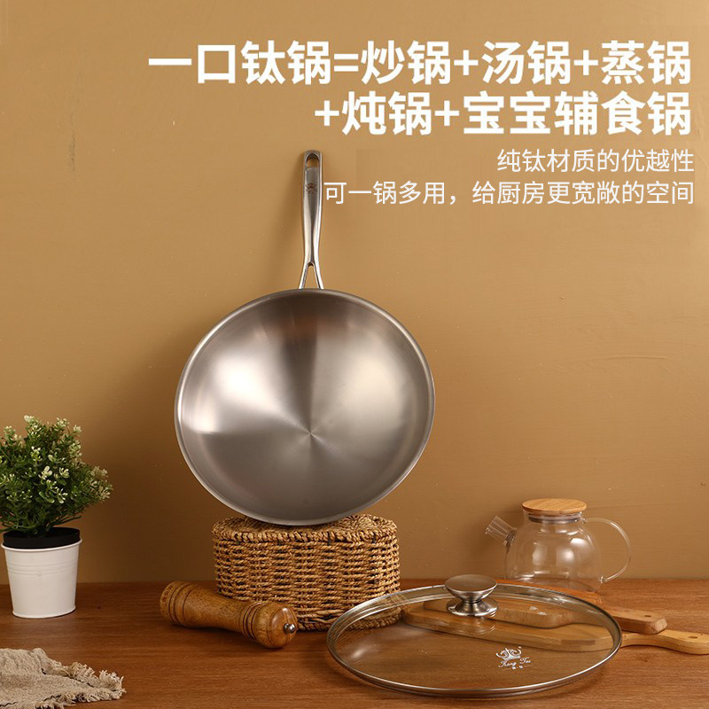 圆底钛锅纯钛炒锅家用不生锈炒菜锅无涂层不易粘锅炒勺燃气灶通用