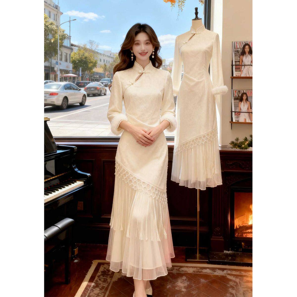 新中式国风立领改良旗袍气质感连衣裙出席重要场合的漂亮裙子25冬