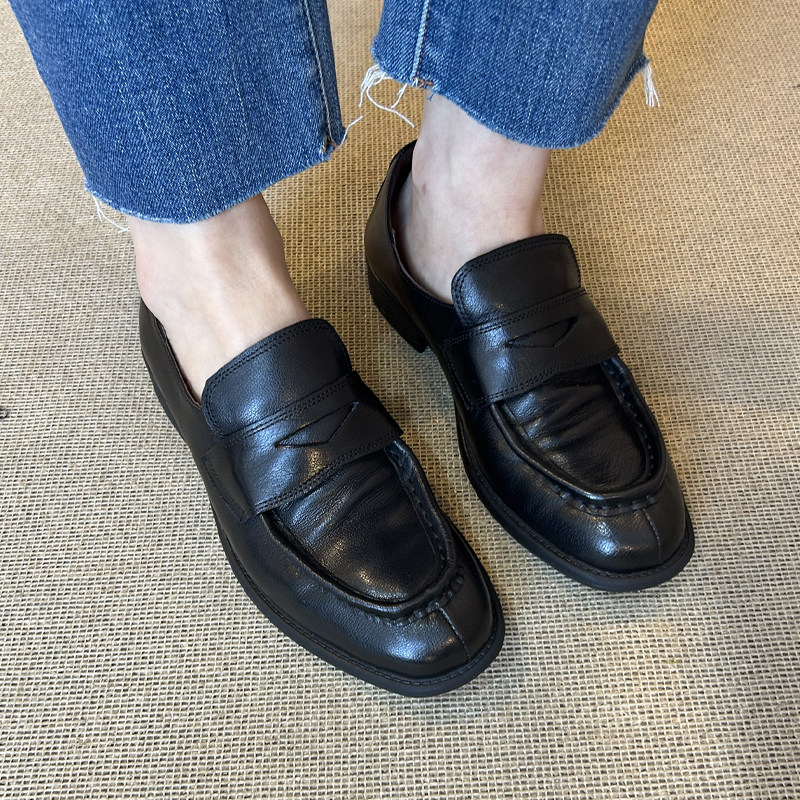 敦绿岛丨一粒咖啡豆丨复古粗跟乐福鞋英伦单鞋日系四季小皮鞋