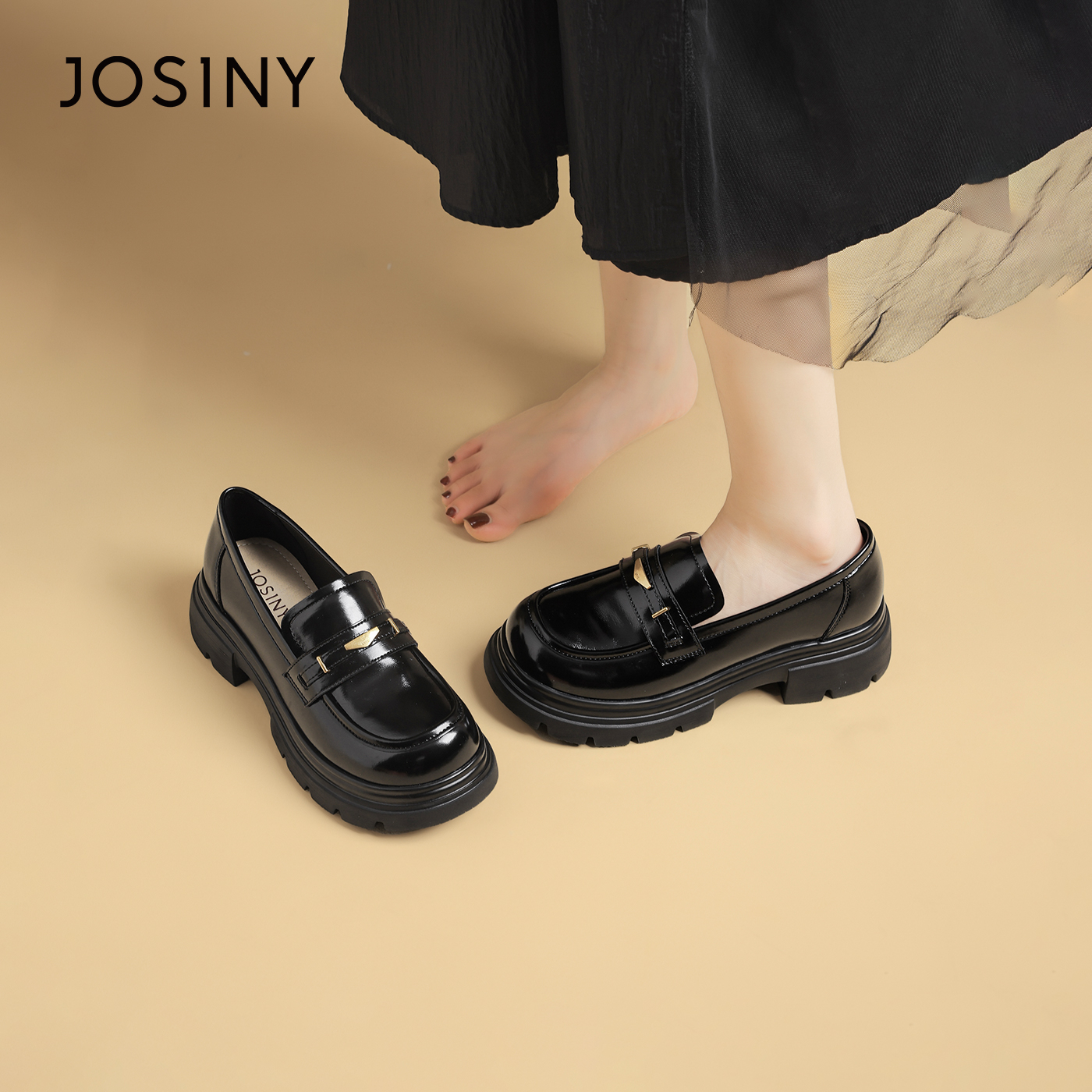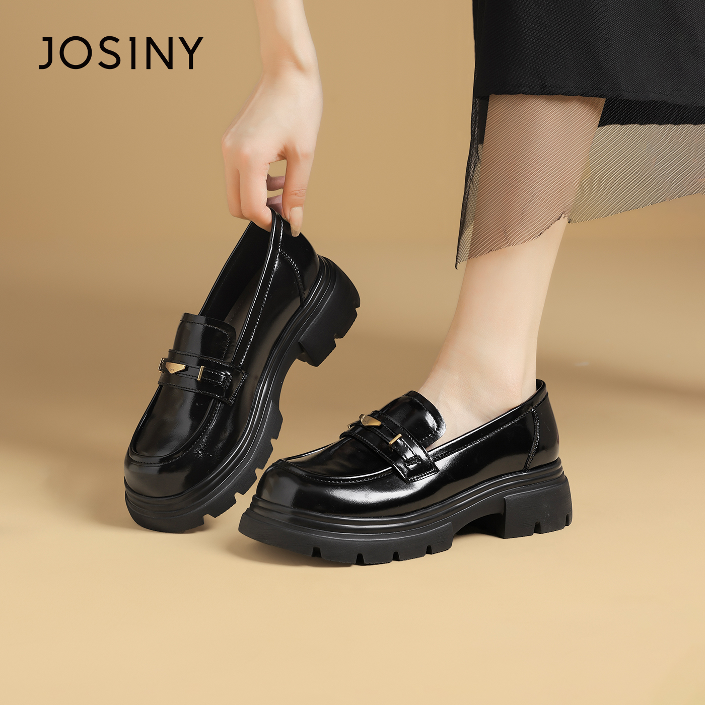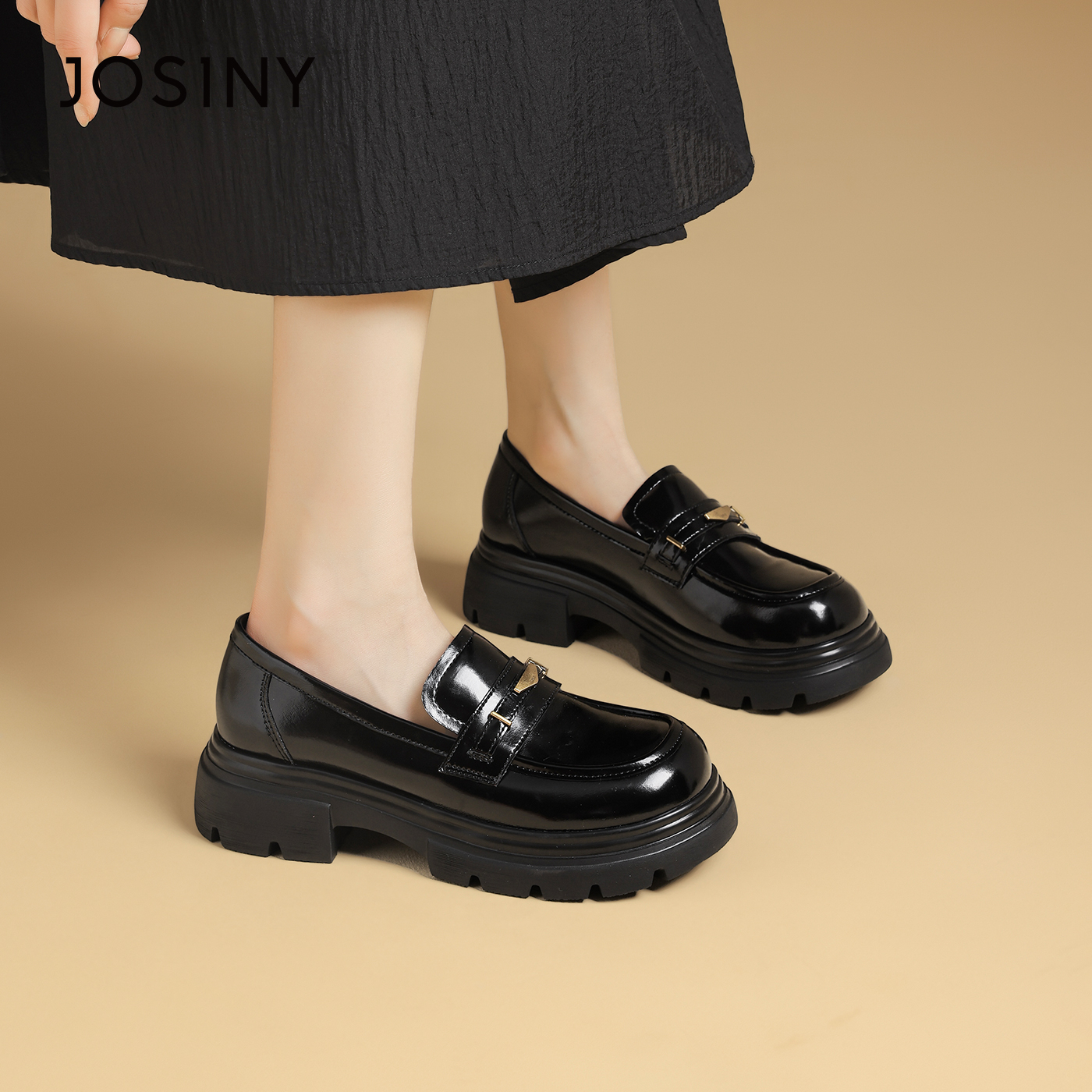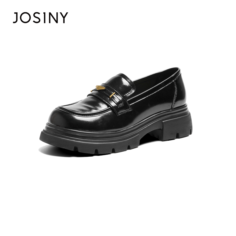 卓诗尼乐福鞋女2025年秋季新款英伦风深口松糕底厚底小皮鞋单鞋