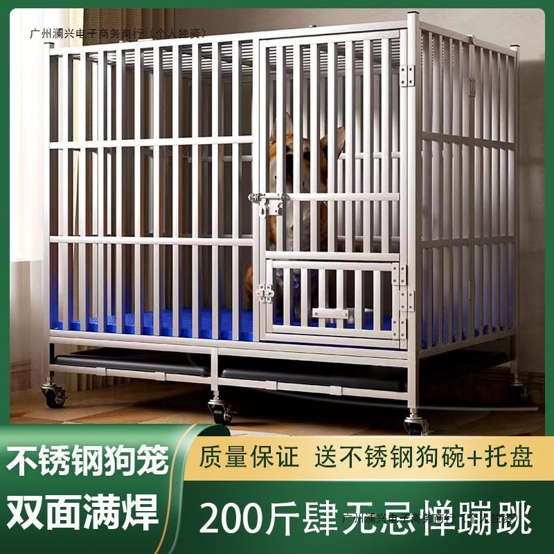 不锈钢狗笼大型犬狗笼子可折叠中型犬带厕所方管室内边牧宠物金毛