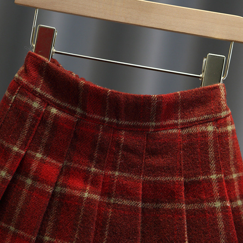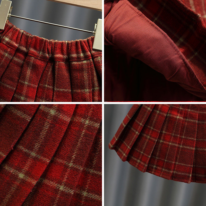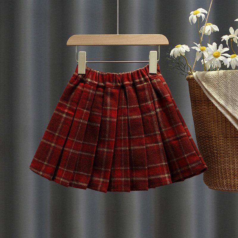 女童毛呢加厚短裙宝宝秋冬装儿童半身裙女孩洋气百搭格子裙时髦