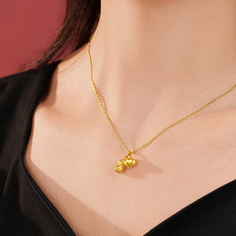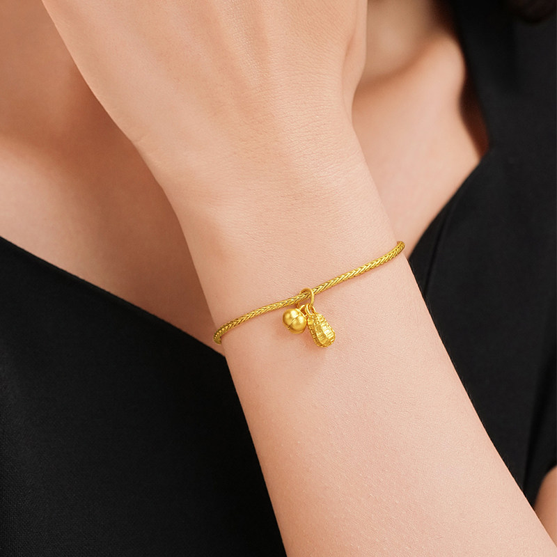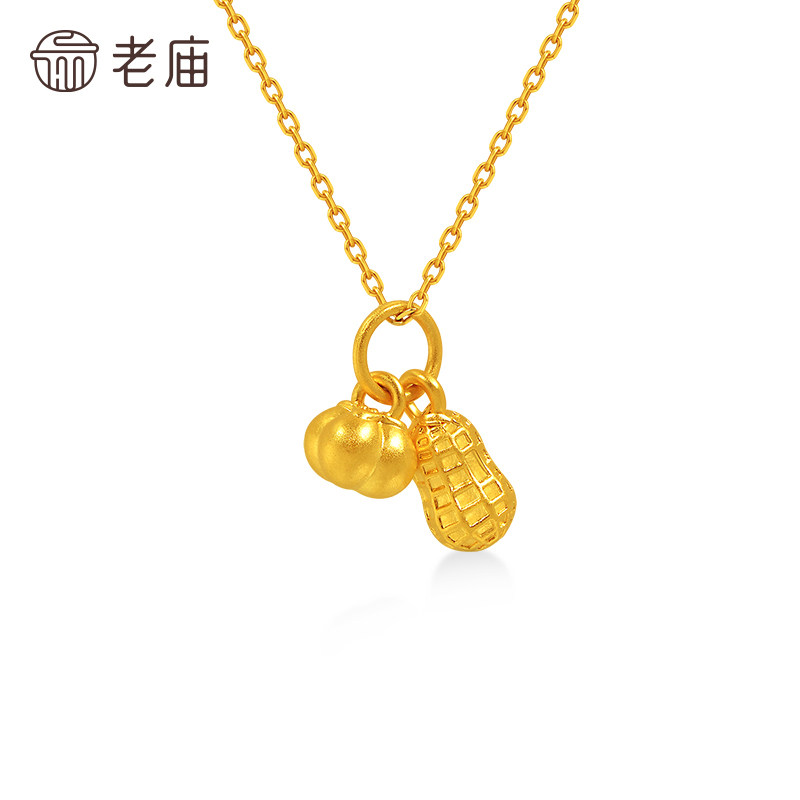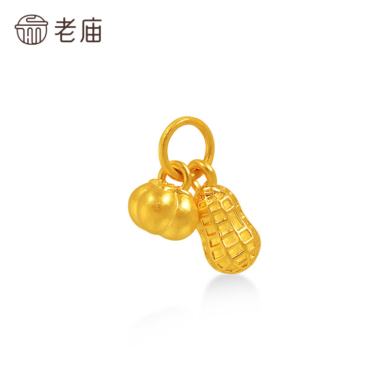 老庙黄金足金柿子花生挂坠5D饱满圆润好事要发生精致小巧吉祥送礼