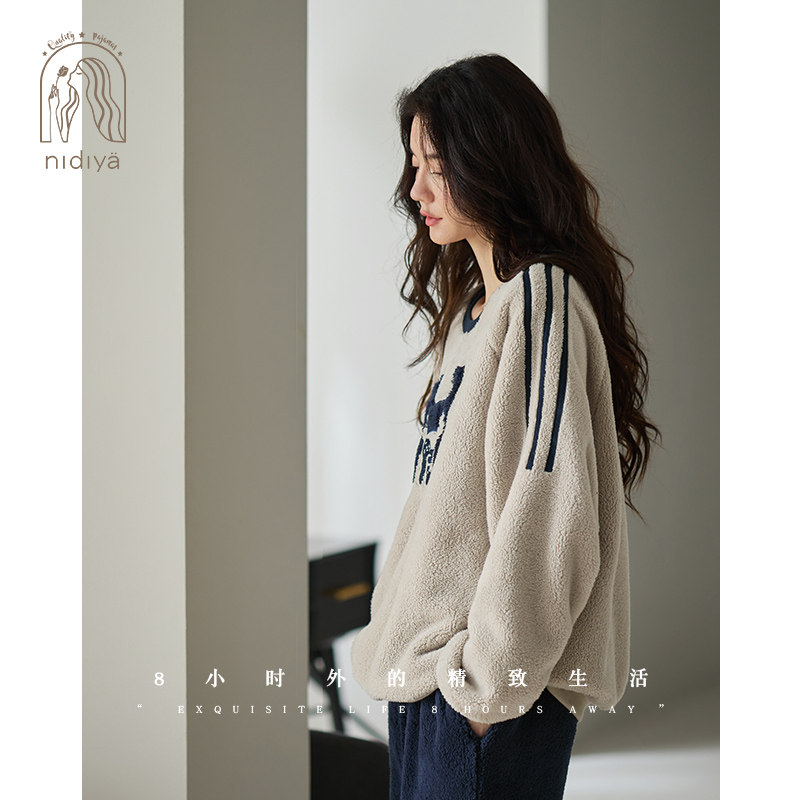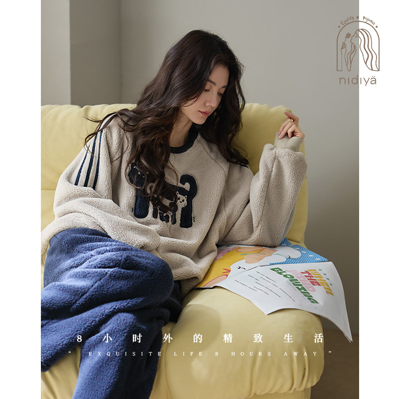 妮狄娅珊瑚绒睡衣女秋冬季加厚保暖减龄休闲时尚可外穿家居服套装