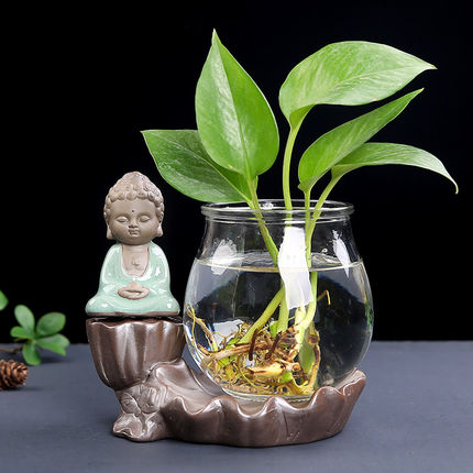 创意绿萝水培植物玻璃透明养花花瓶插花容器花盆器皿桌面装饰摆件