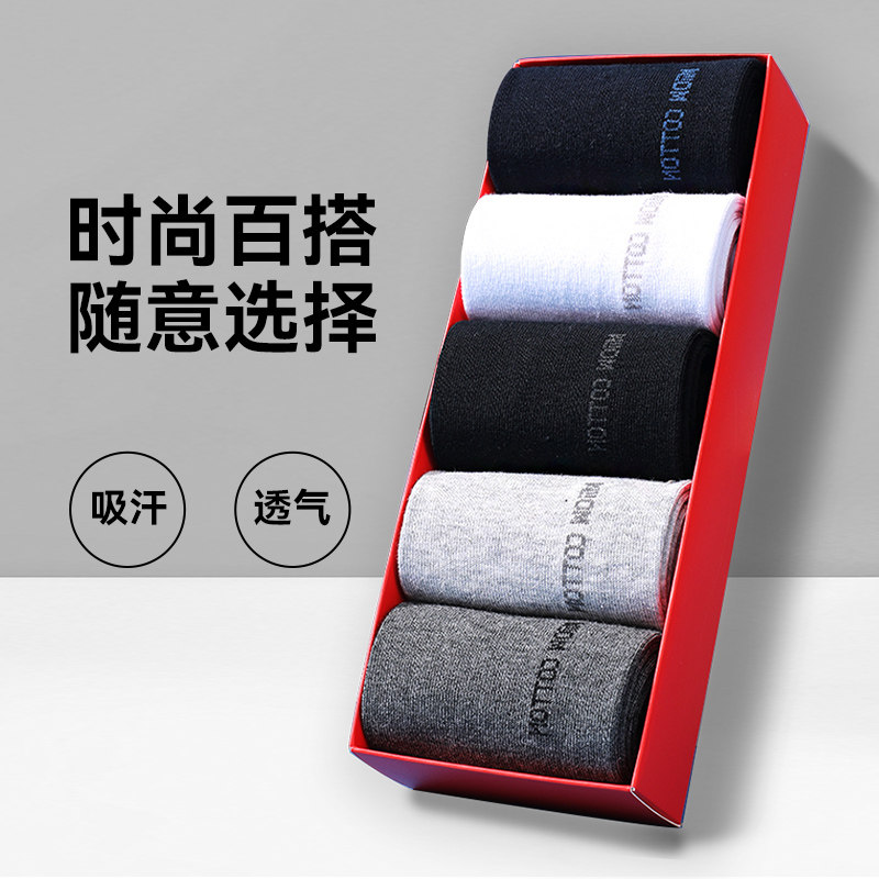 猫人袜子男中筒纯棉防臭卷边松口袜不勒脚老年人秋冬男士棉袜男袜