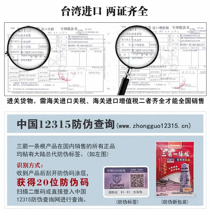 台湾进口三箭一条根8贴精油贴布凝胶原装正品膏贴颈官方旗舰店FC6