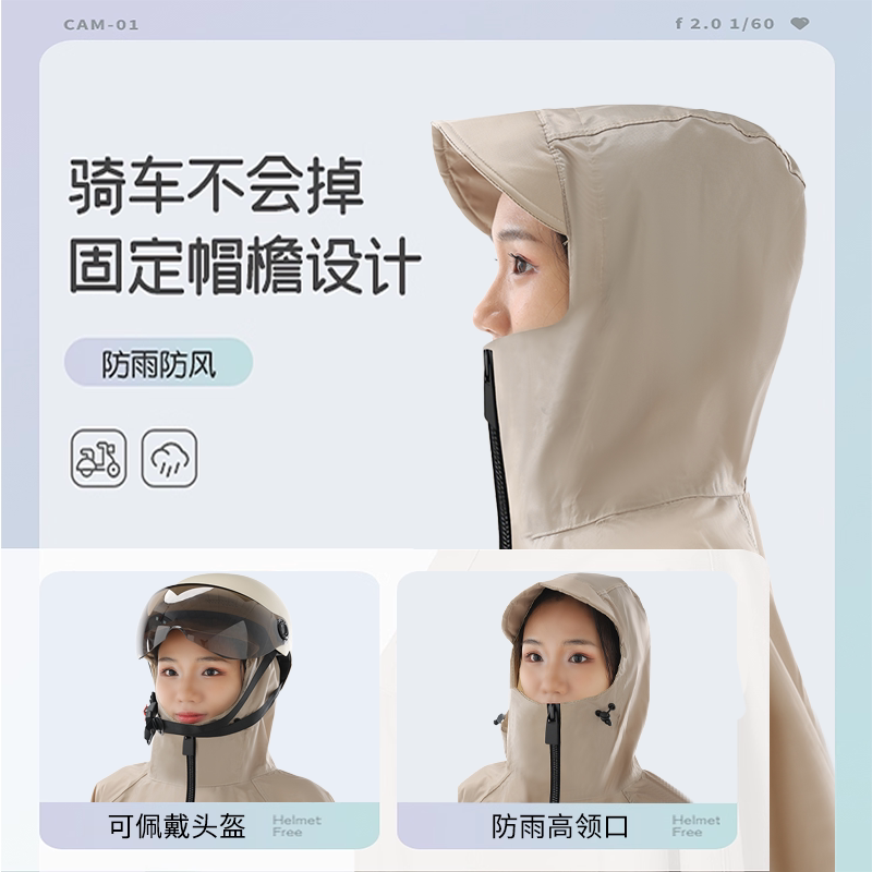 【大人小孩均适用】拉链高领雨披