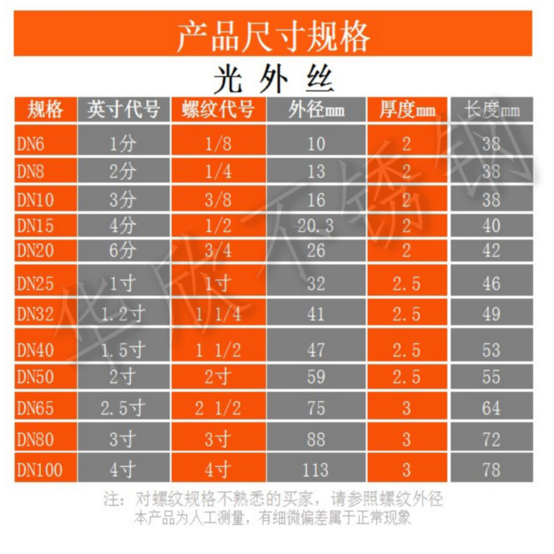 304不锈钢管子外丝直接圆管外丝201外螺纹水管4分6分光外丝接头