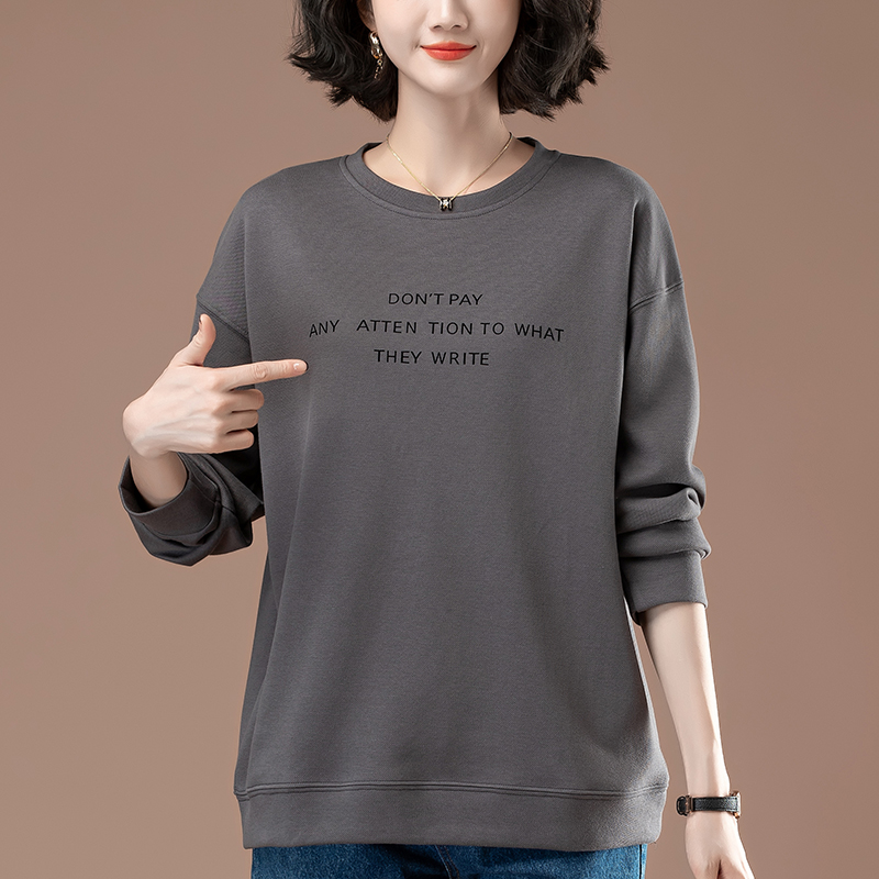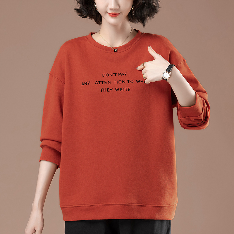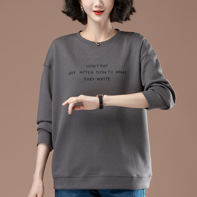 中年妈妈宽松卫衣女薄款春秋季加肥加大码女装圆领显瘦套头上衣女