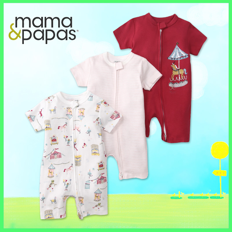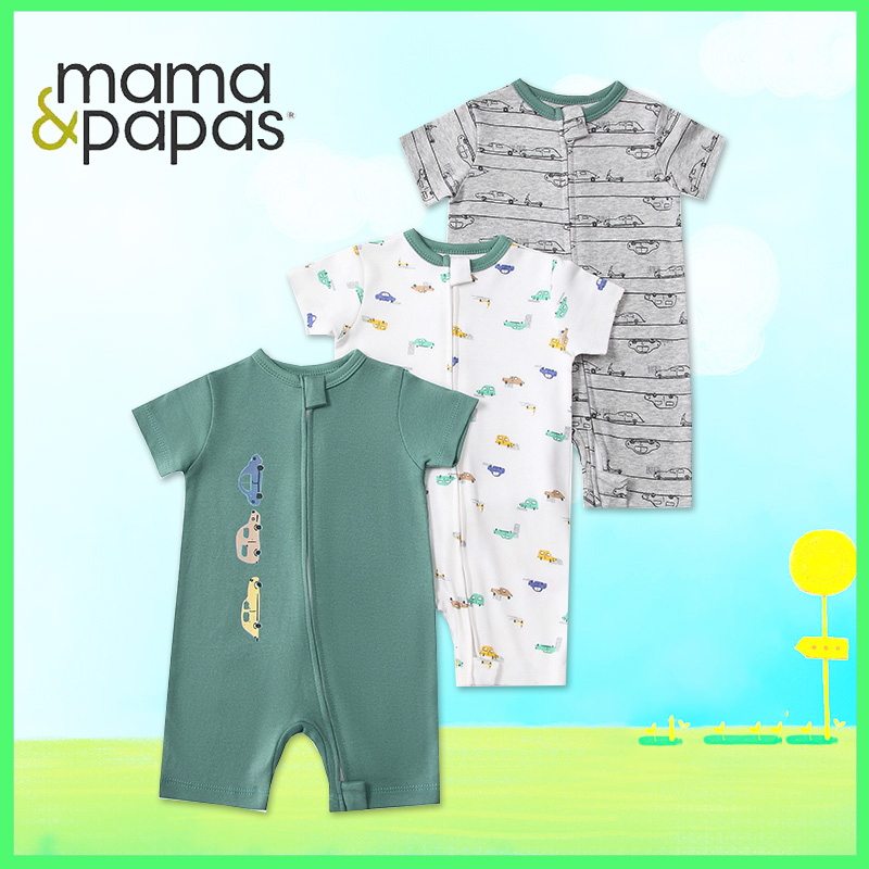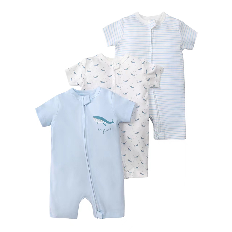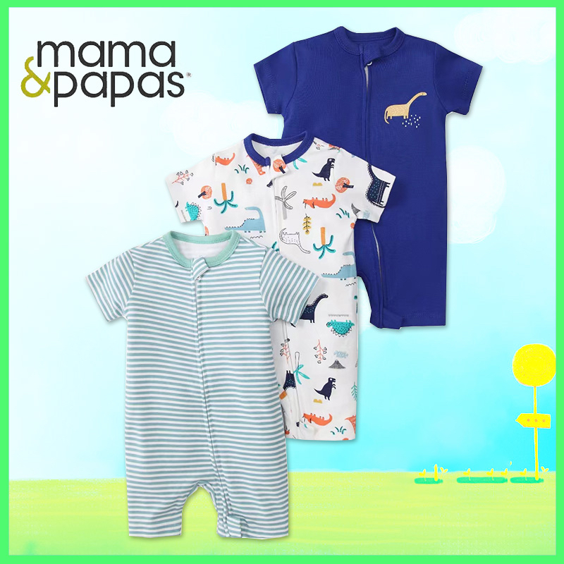 mamapapas外贸童装夏季婴儿短袖爬服纯棉BB衫宝宝拉链式连体衣ins