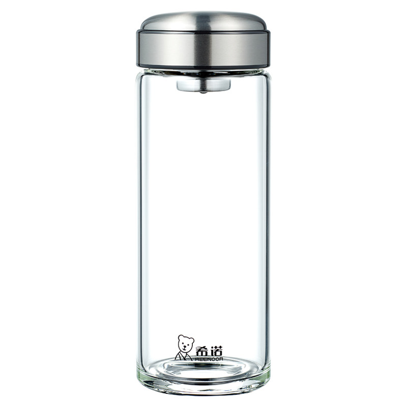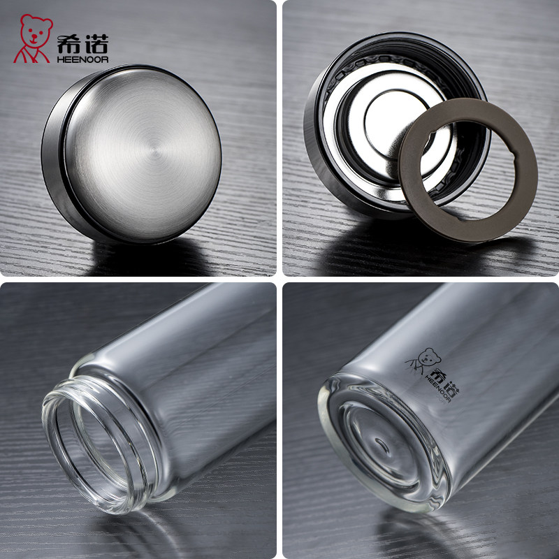 希诺单层玻璃杯男大容量水杯简约户外便携带滤网商务茶杯透明杯子