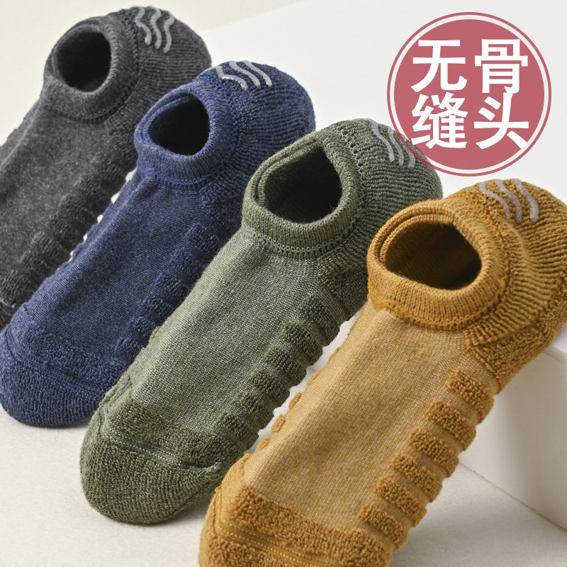 男士纯棉加厚底毛巾吸汗隐形短袜无痕无骨缝合秋冬季全棉运动船袜