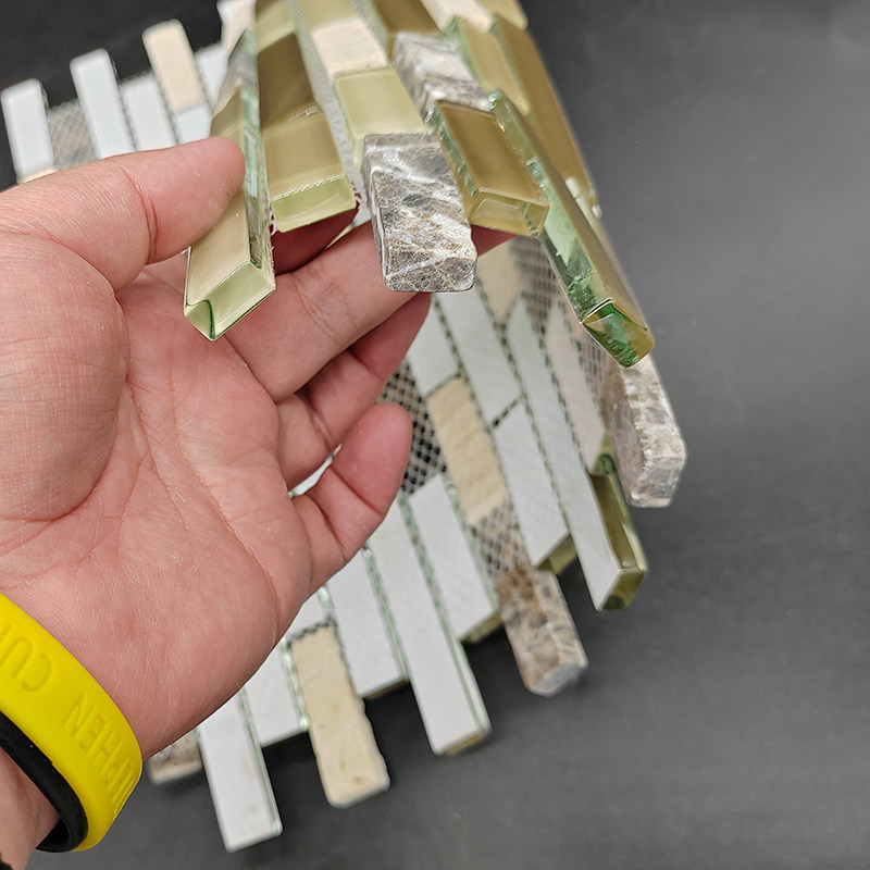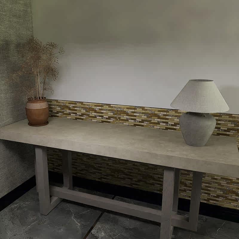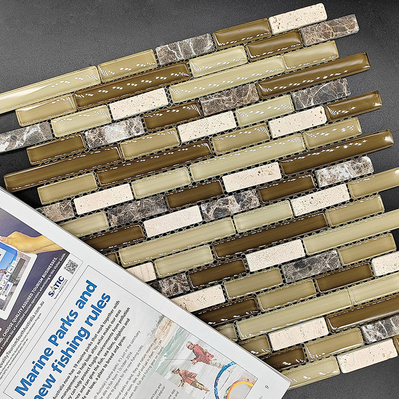 KASARO侘寂风长条洞石玻璃马赛克背景墙厨房水池玄关阳台地砖瓷砖