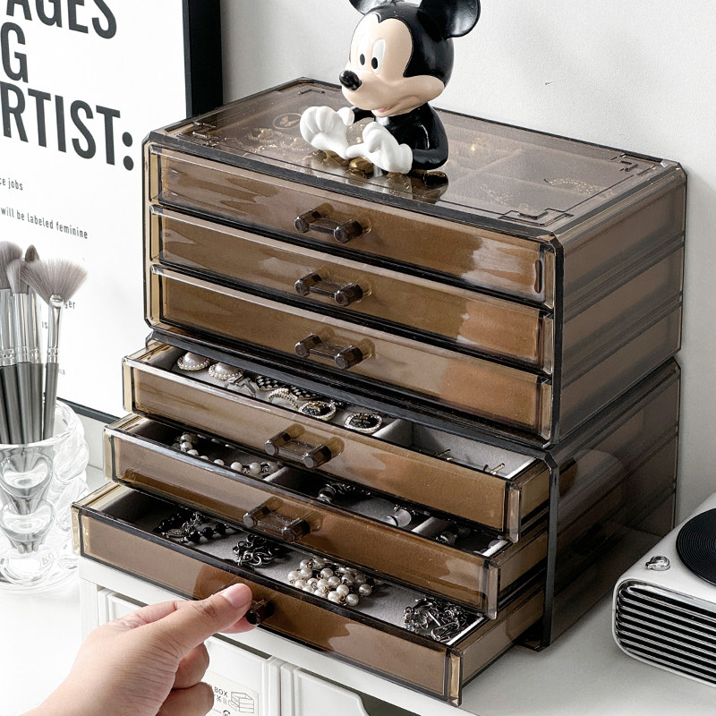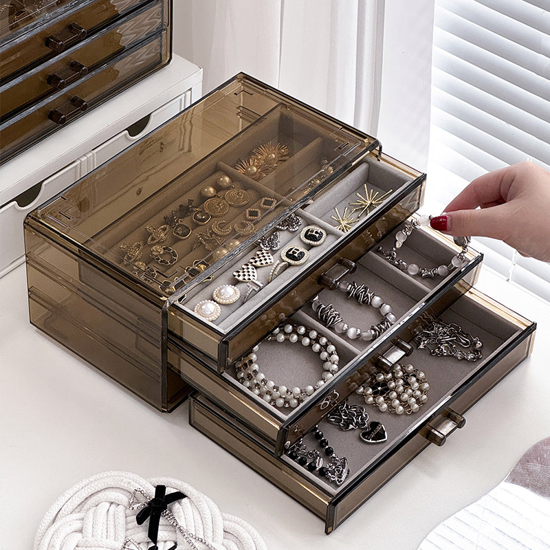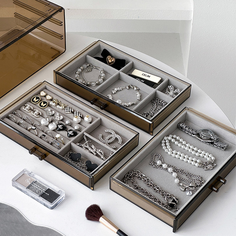 首饰收纳盒高级感轻奢耳环项链收拾盒大容量饰品抽屉整理盒抗氧化