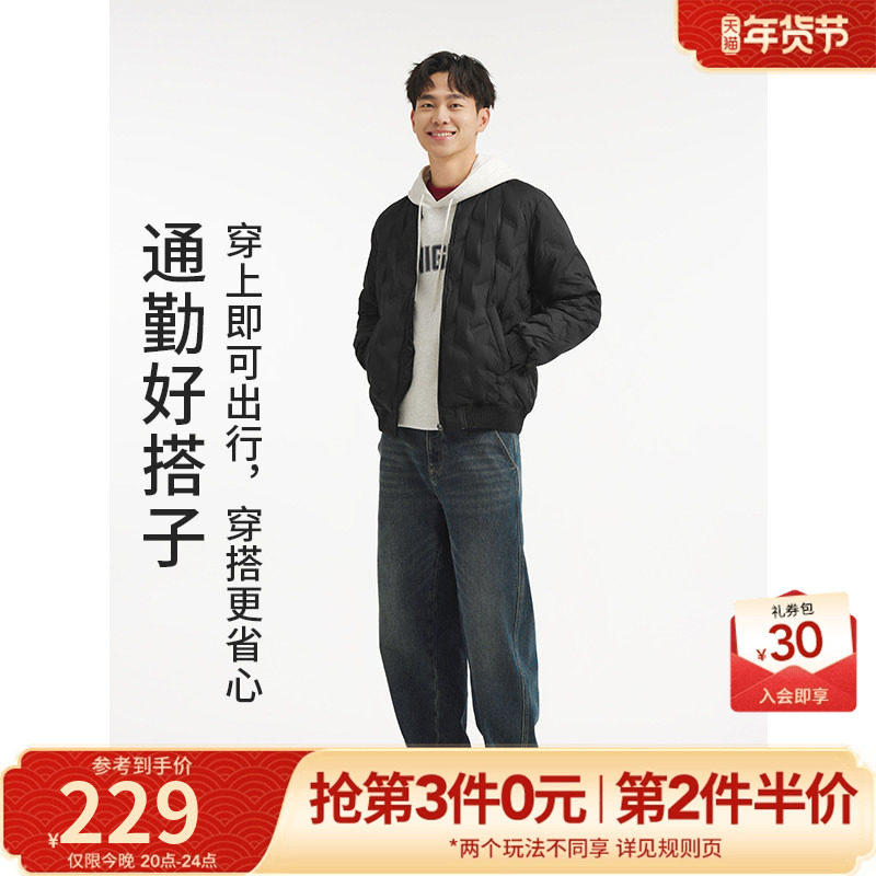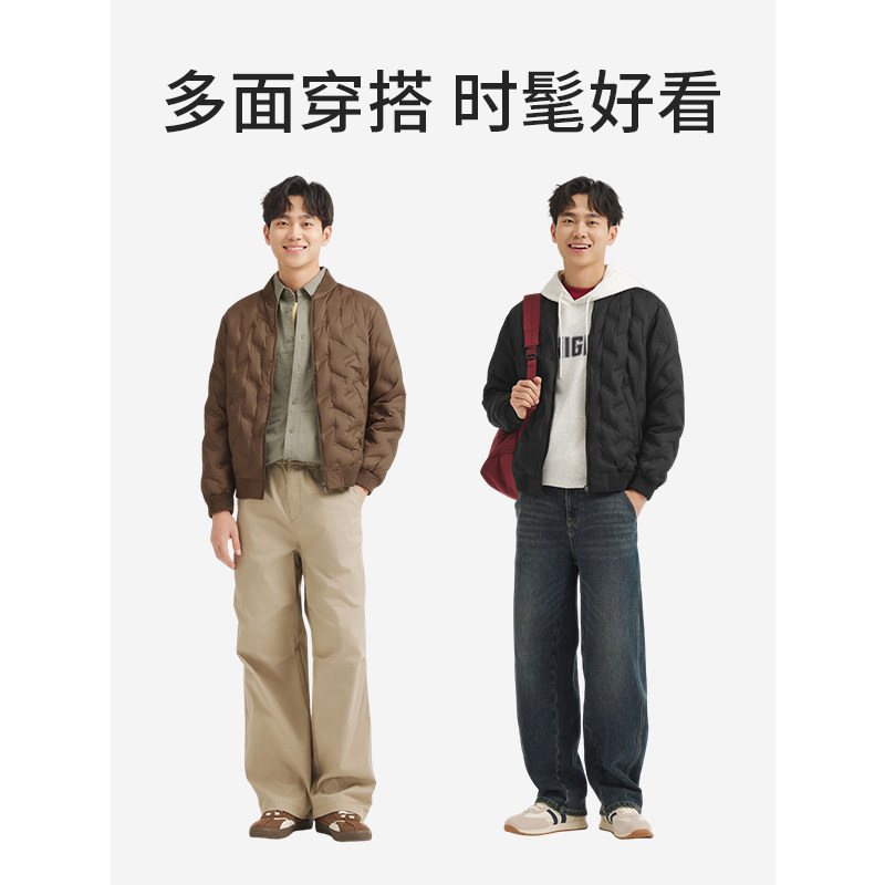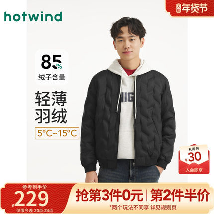 热风2025年男士轻薄压纹羽绒服