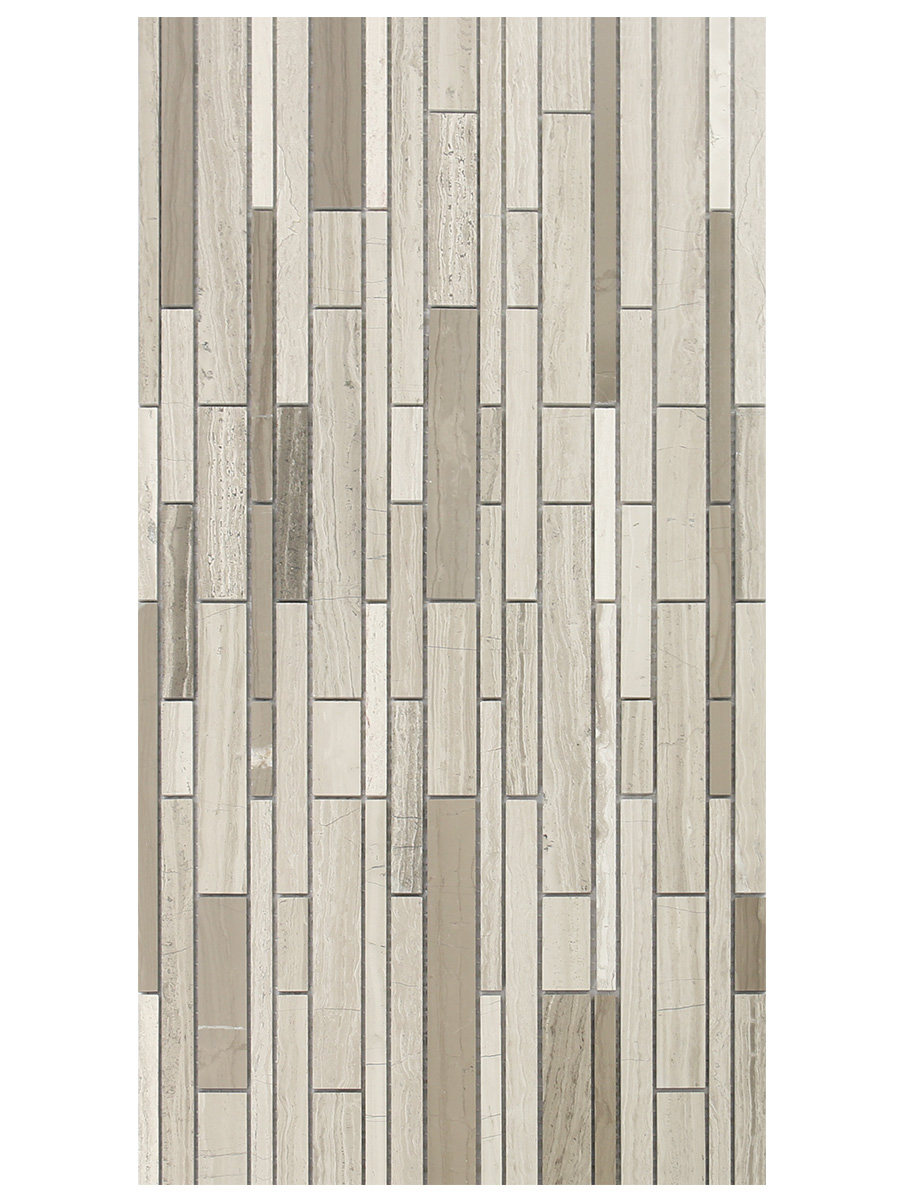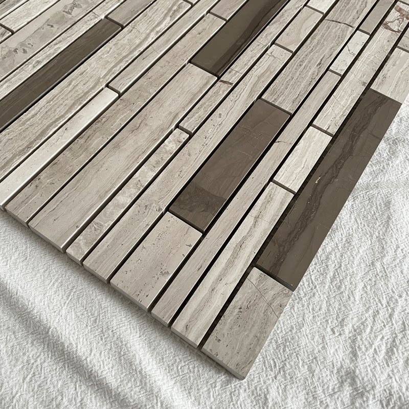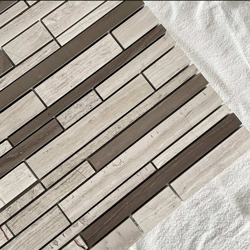 灰木纹天然大理石石材马赛克瓷砖长短条酒店卫生间淋浴房背景墙