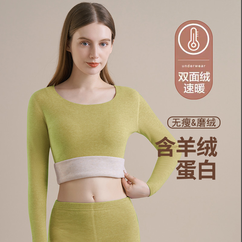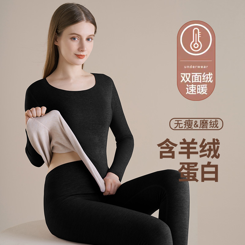 女士加绒保暖内衣德绒发热无痕秋衣秋裤套装冬季打底内穿纯棉毛衫