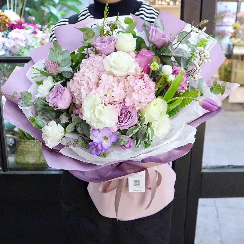 鲜花速递生日同城配送玫瑰绣球混搭花束礼盒南京苏州无锡扬州镇江