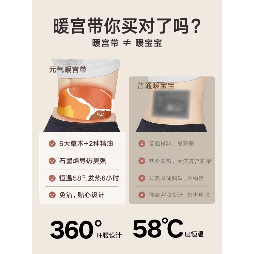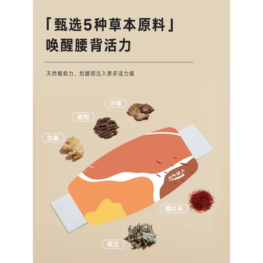 元气达人蕲艾藏红花暖腹腰带暖宫贴热敷护腰暖肚大姨妈发热贴腰贴