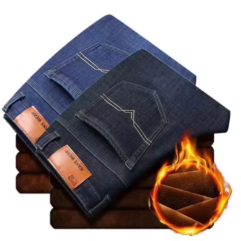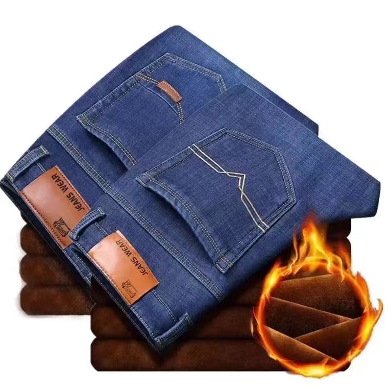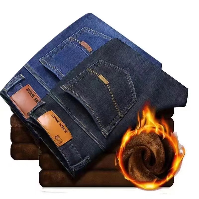 秋冬季牛仔裤男士加绒加厚保暖长裤子中青年高腰干活工作裤休闲裤