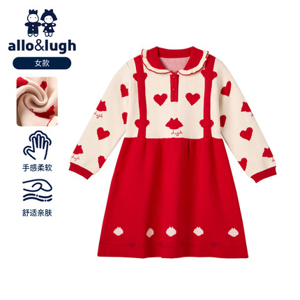阿路和如童装女童裙子秋冬2025新款女宝公主洋气甜美翻领连衣裙