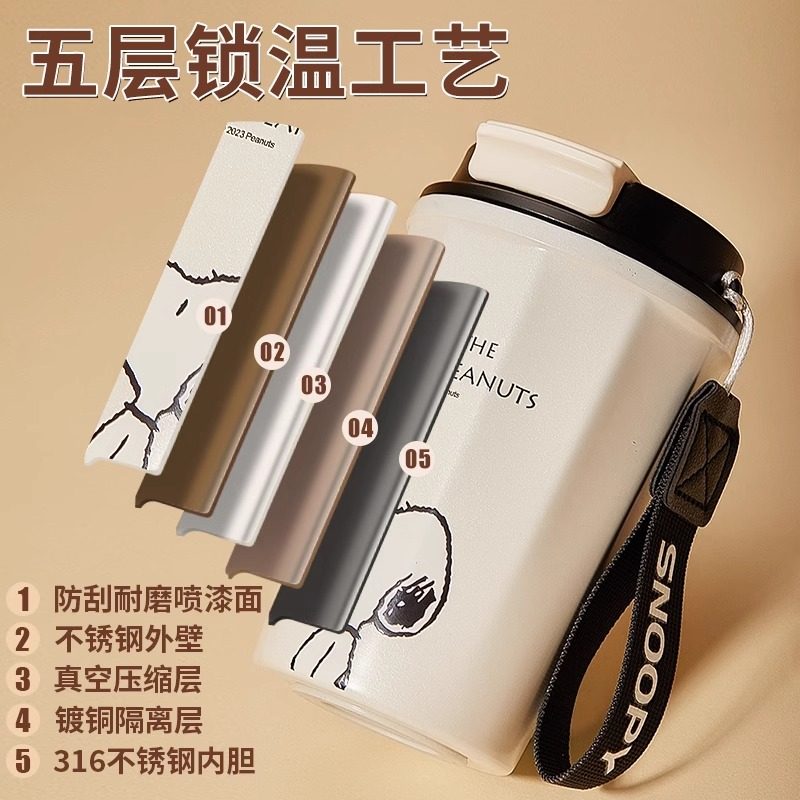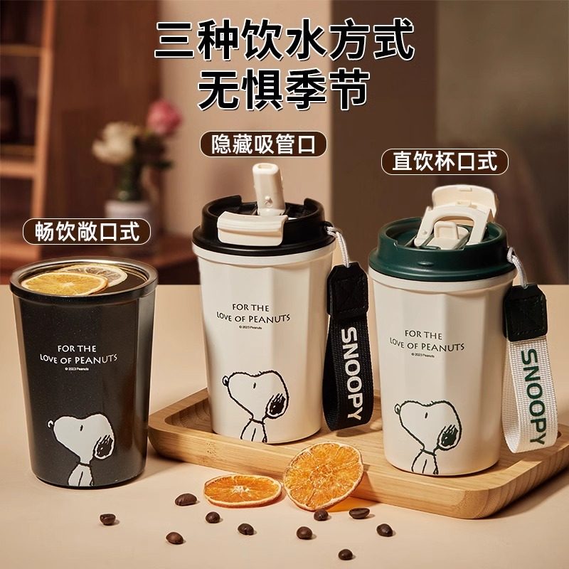 史努比保温杯咖啡杯2024新款316不锈钢男女生高颜值便携双饮杯子