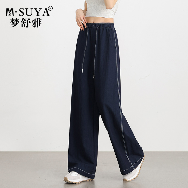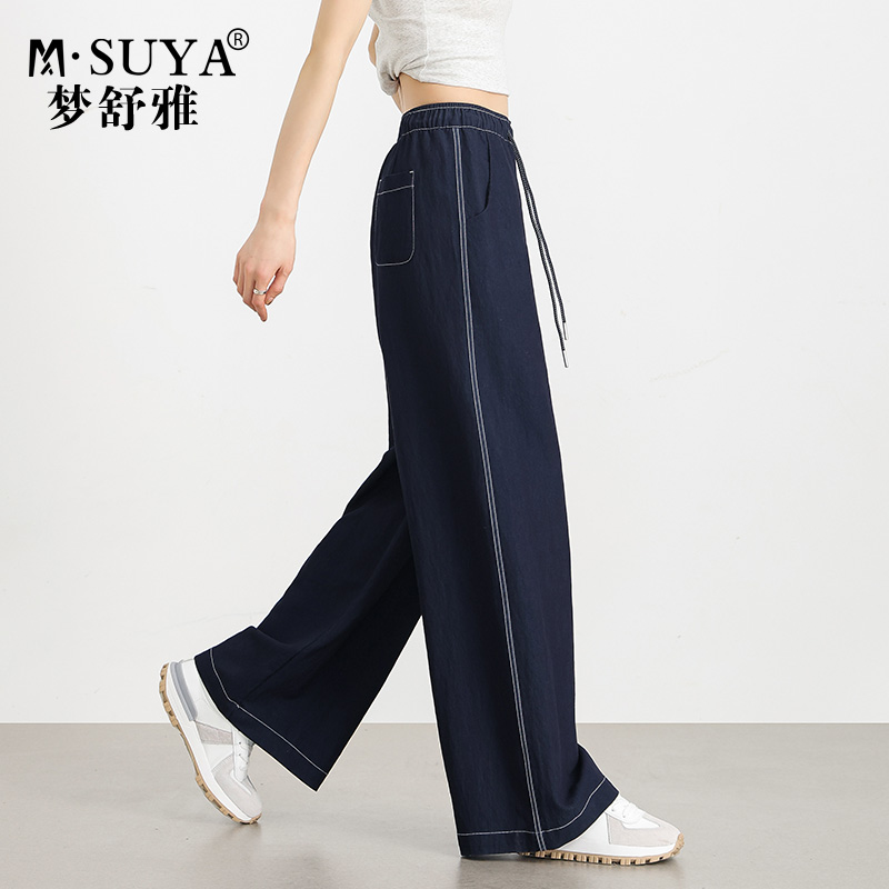 梦舒雅女裤仿牛仔阔腿裤女春秋季高腰显瘦时尚百搭宽松直筒休闲裤